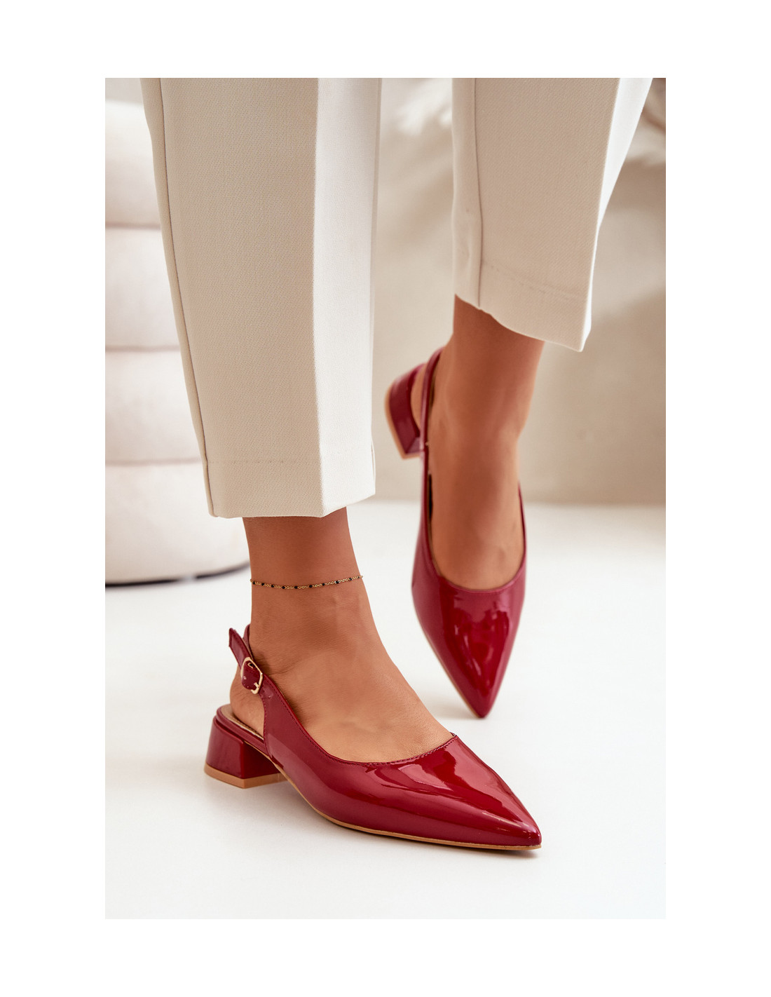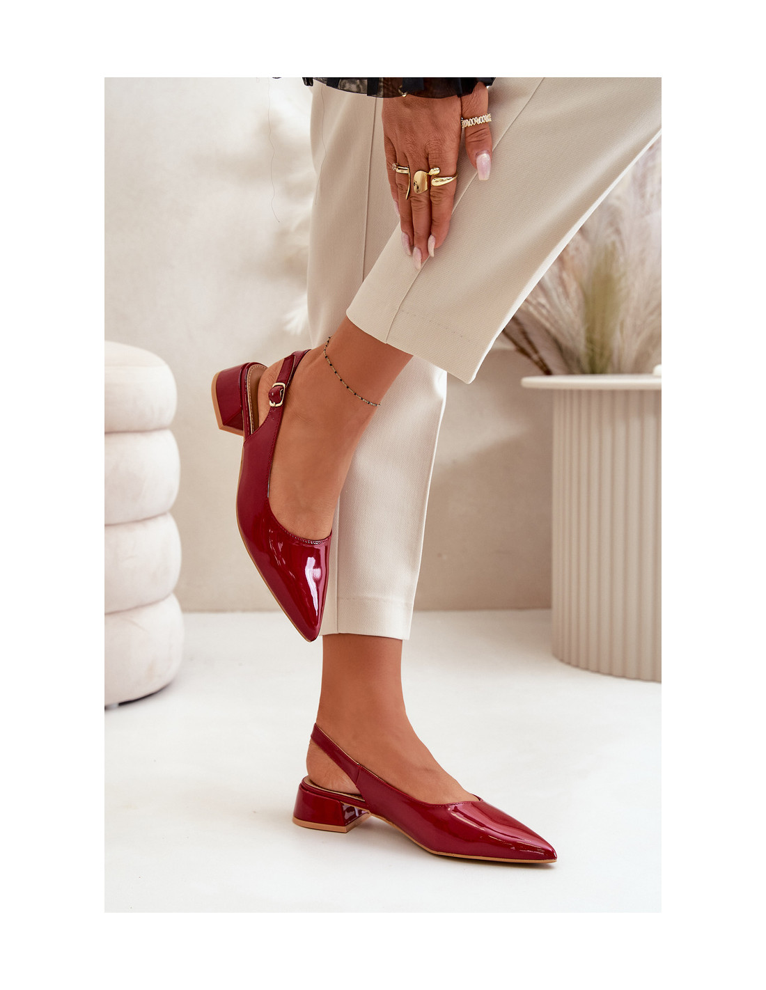 Patentiniai baleto bateliai su žemu blokiniu kulnu – tai išskirtinai elegantiškas pasiūlymas, puikiai derinantis stilių su komfortu. Smailūs pirštai optiškai ilgina kojas. Atidengtas kulnas suteikia jiems lengvumo. Šie baleto buteliai puikiai tinka tiek kasdieniniam stiliui, tiek iškilmingesnėms progoms. Renkantis dydį, vadovaukitės dydžių lentele.