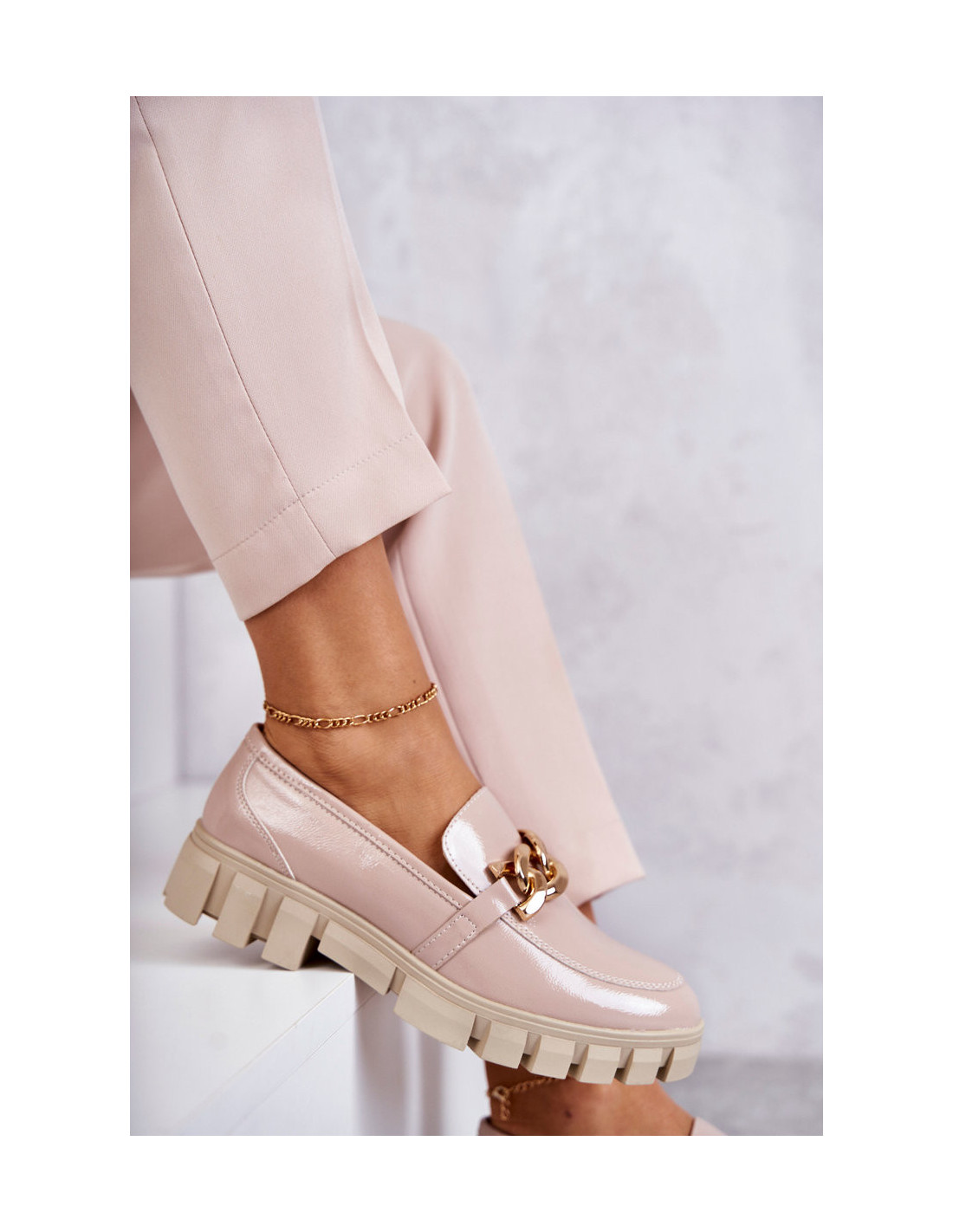 Klasikiniai batai yra puikus pasirinkimas darbo stiliui. Puikiai atrodo tiek prie kelnių, tiek prie sijono. Auksinė plastiko puošmena gražiai pabrėžia visumą. Batai turi masyvų padą su ryškiu grioveliu. Lakuota eko oda – praktiškas pasirinkimas kasdieniam naudojimui. Loafers yra batai, kurie turi būti jūsų drabužių spinta. Renkantis dydį, naudokite dydžių lentelę.