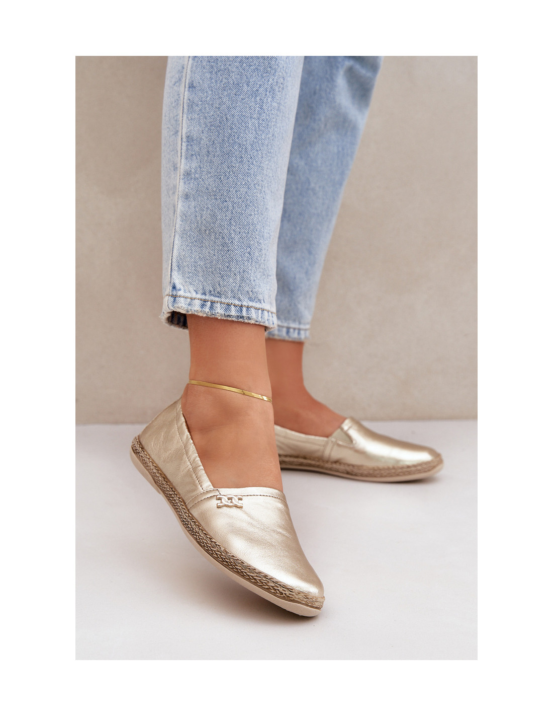 Elegantiškos odinės espadrilės moterims Zazoo 10177 aukso