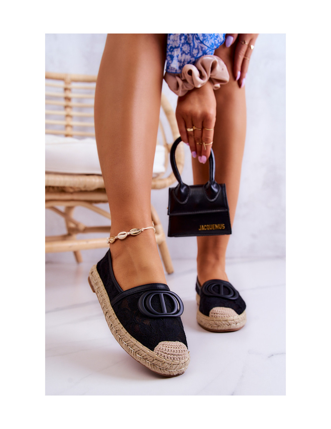 Moteriškos nėriniuotos espadrilės su puošmena Black Summer Dream