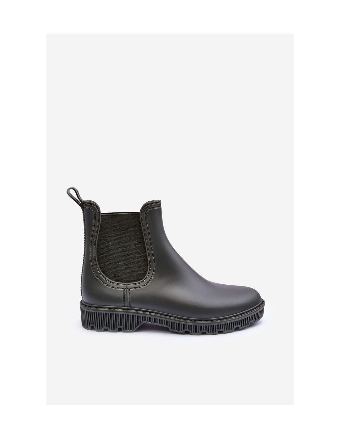 Klasikiniai, matiniai moteriški kaliošai buvo pagaminti iš guminės medžiagos. Batai buvo pastatyti ant plokščio kulno. Slip-on modelis su medžiaginiu vidpadžiu. Puikiai tinka lietingu oru! Renkantis dydį, vadovaukitės dydžių lentele.