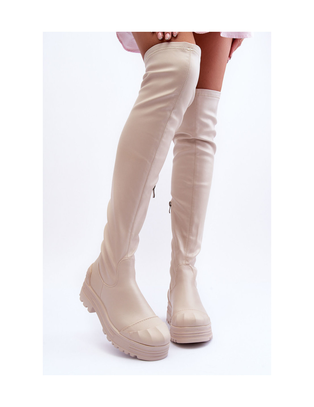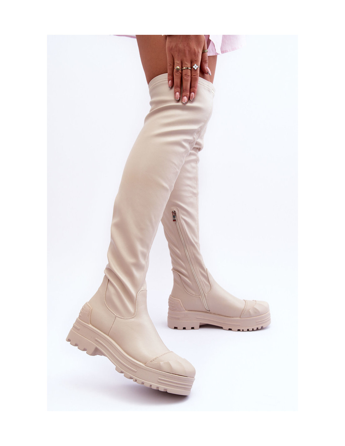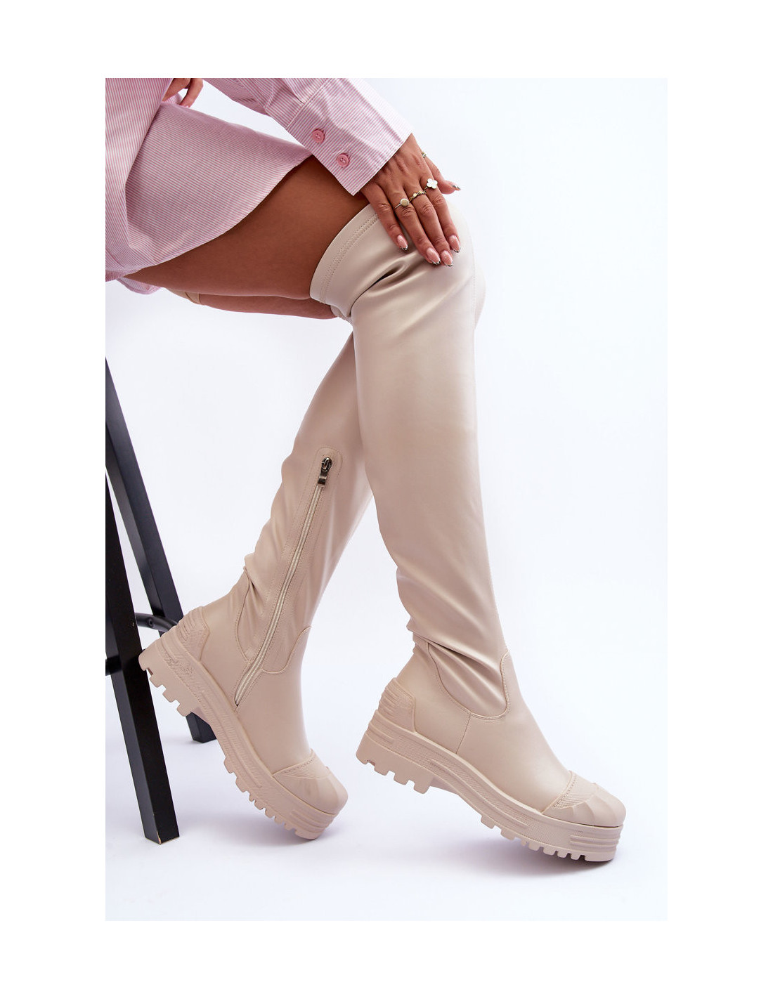 Smėlio spalvos Dudesa aukšti batai su užtrauktuku