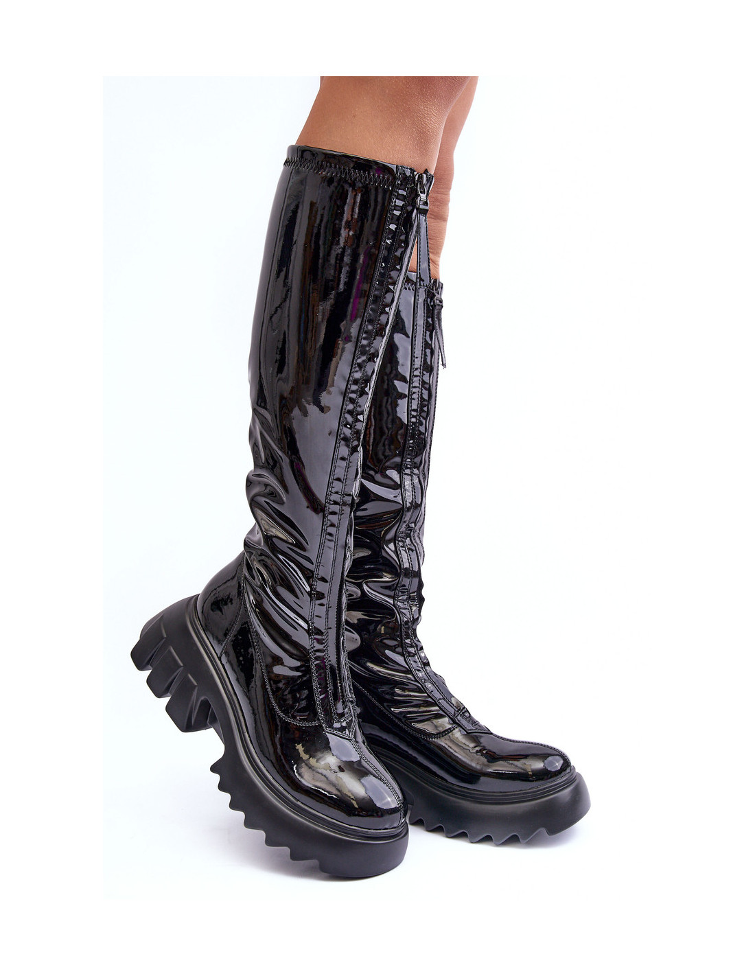 Lakinės odos batai ant didžiulės platformos su juodu užtrauktuku