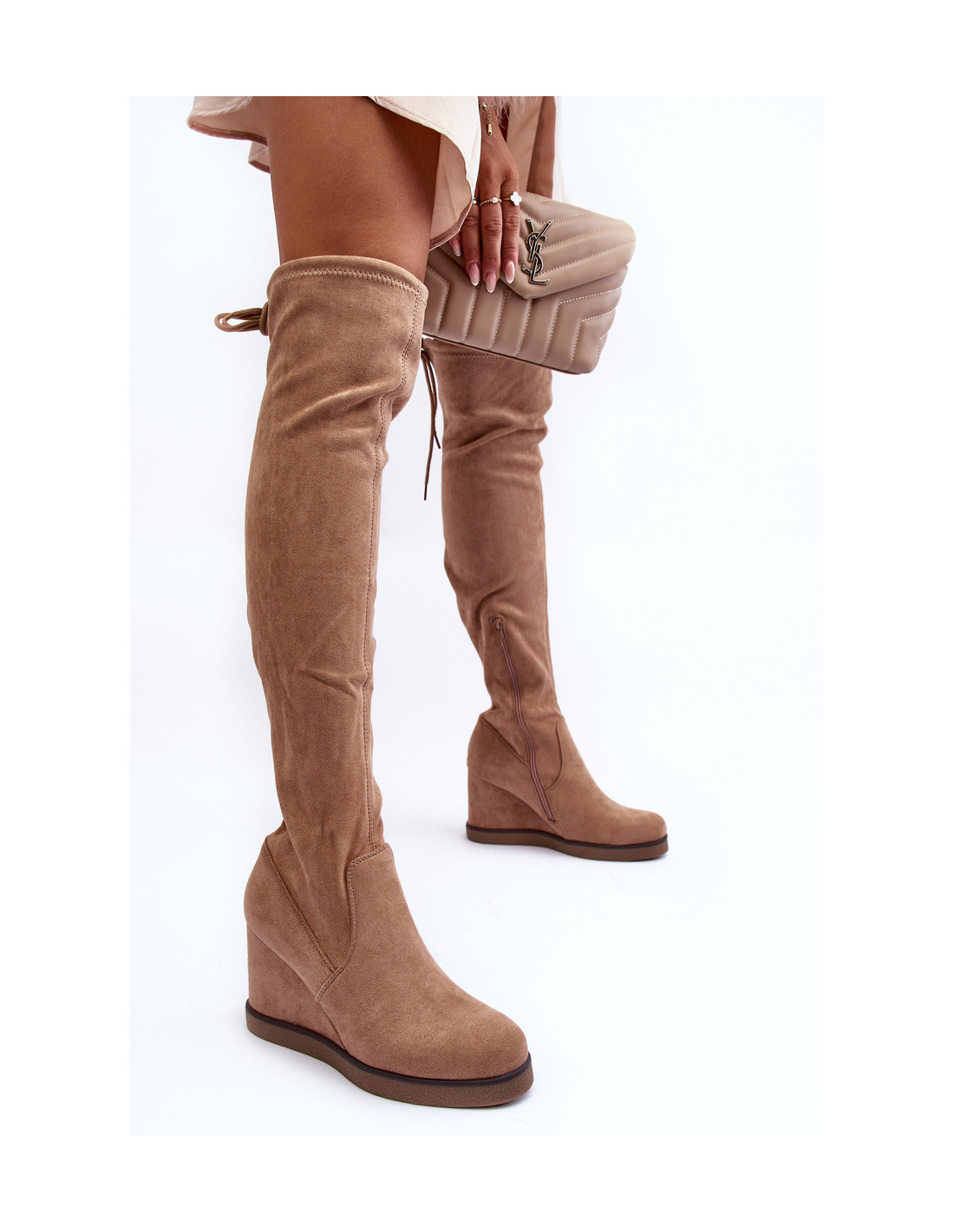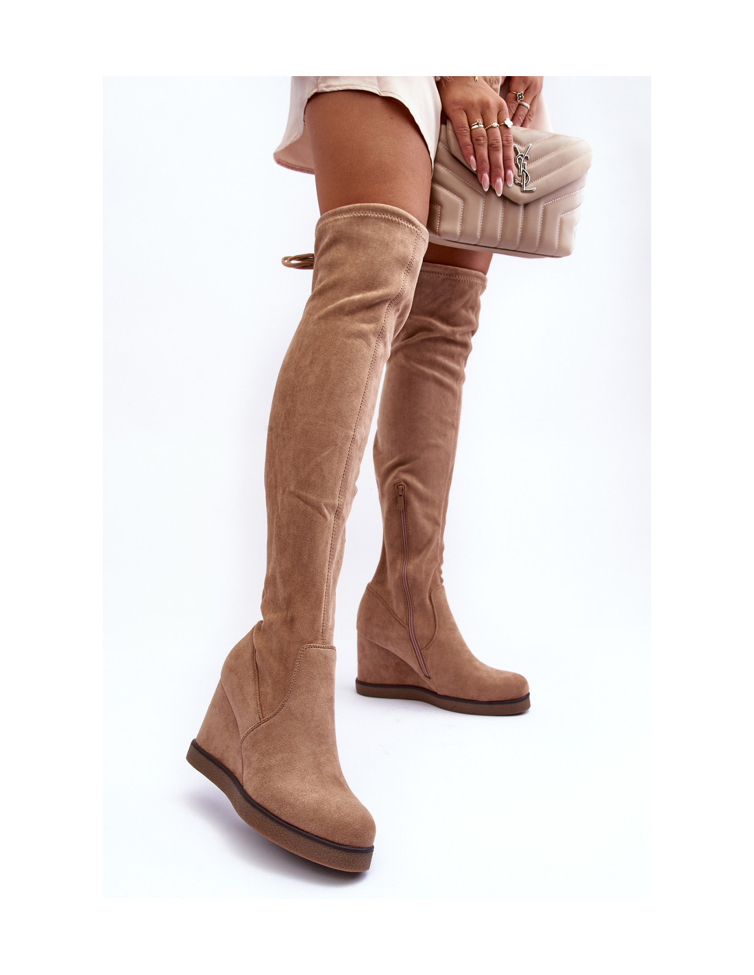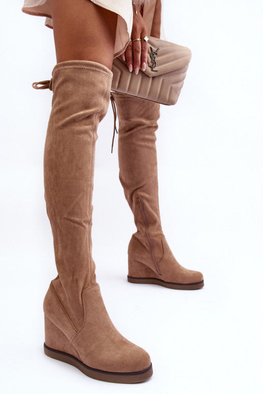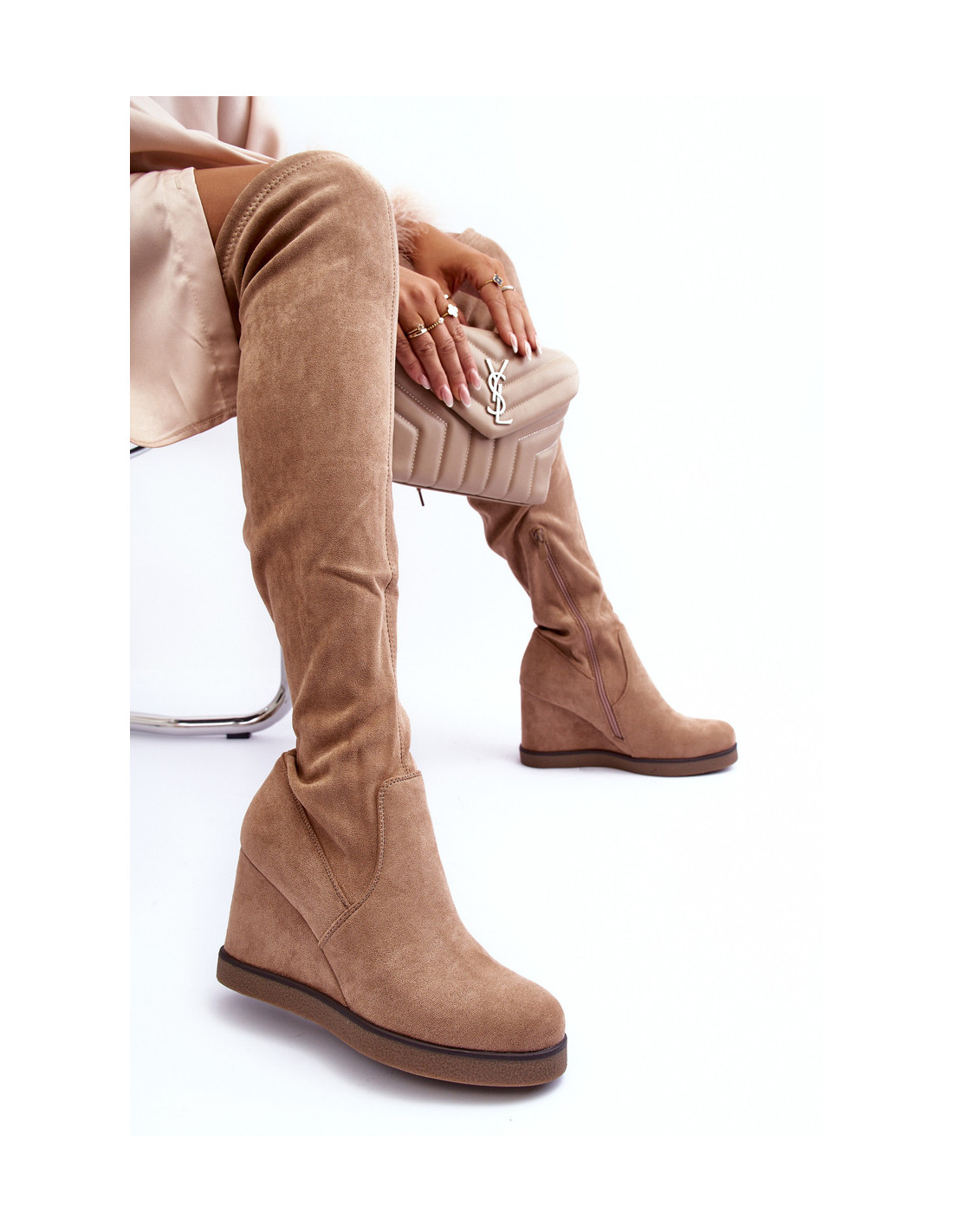 Moteriški batai su suvarstoma manžete virš kelių. Užsegamas modelis su papildomu užtrauktuku rankogalio šone. Pastatykite ant pleišto ir platformos. Izoliacija pėdos aukštyje. Pirštas sutvirtintas. Šis unikalus stilius pradžiugins kiekvieną! Rinkdamiesi dydį, vadovaukitės dydžių lentele.