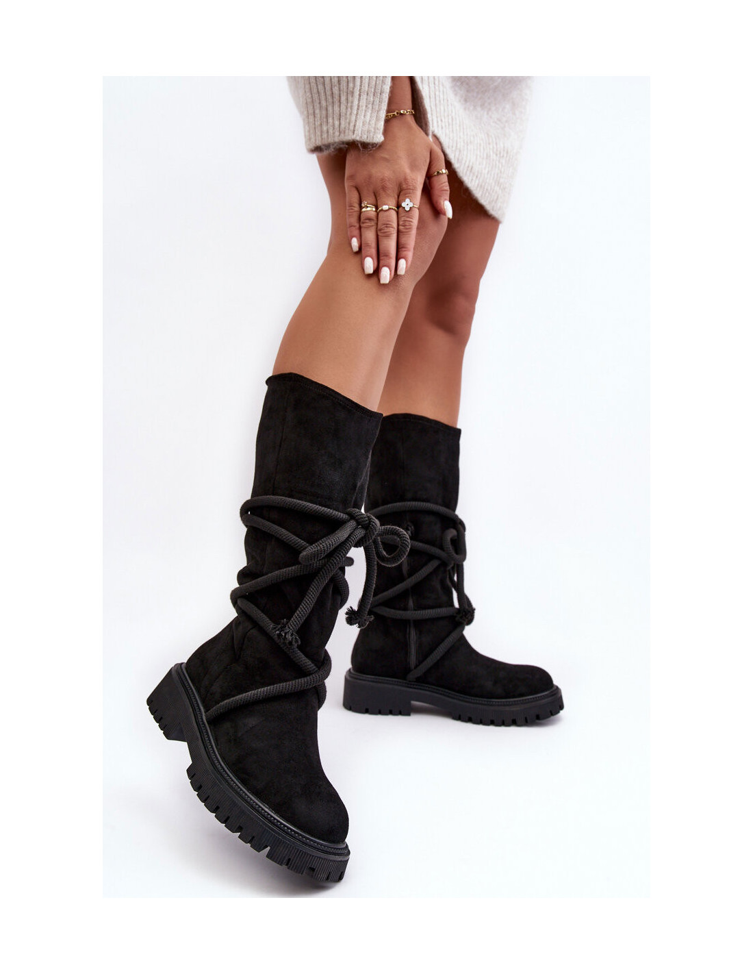Moteriški zomšiniai batai su raišteliu juodai...