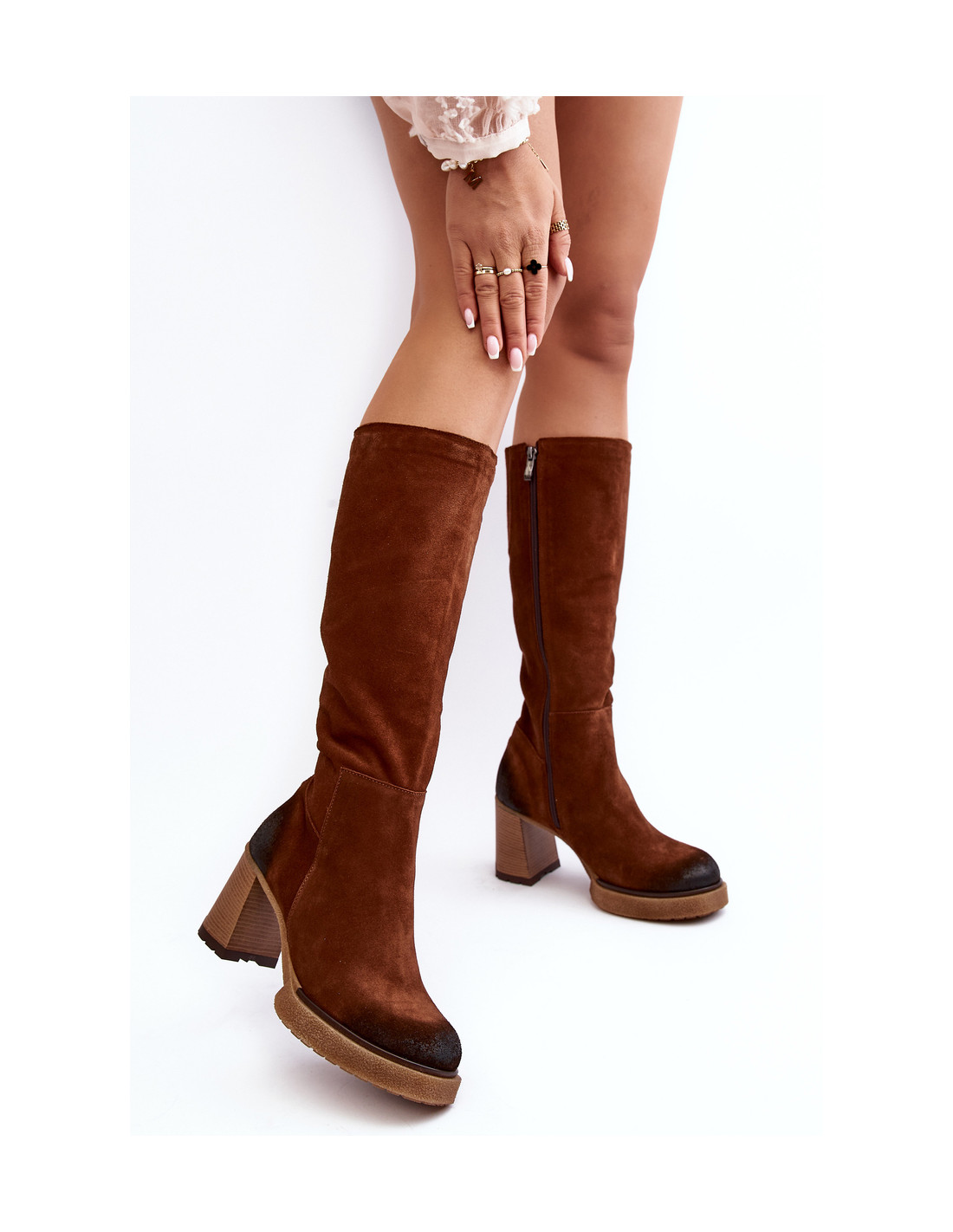 Zomšiniai moteriški aukštakulniai batai virš kelių Lemar Tamsiai Ruda Ceraxa
