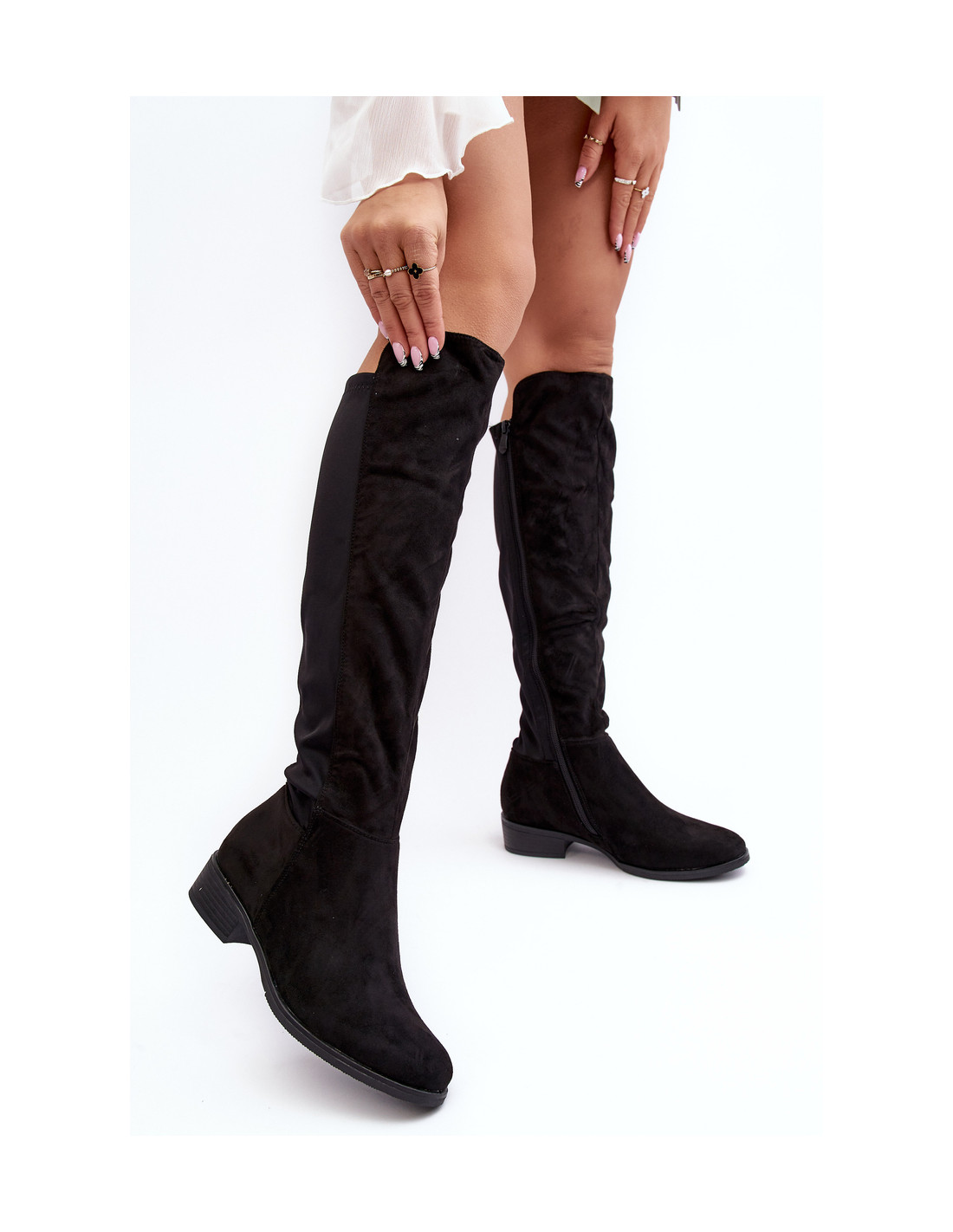 Moteriški zomšiniai batai per kelius S.Barski HY27098A juodi