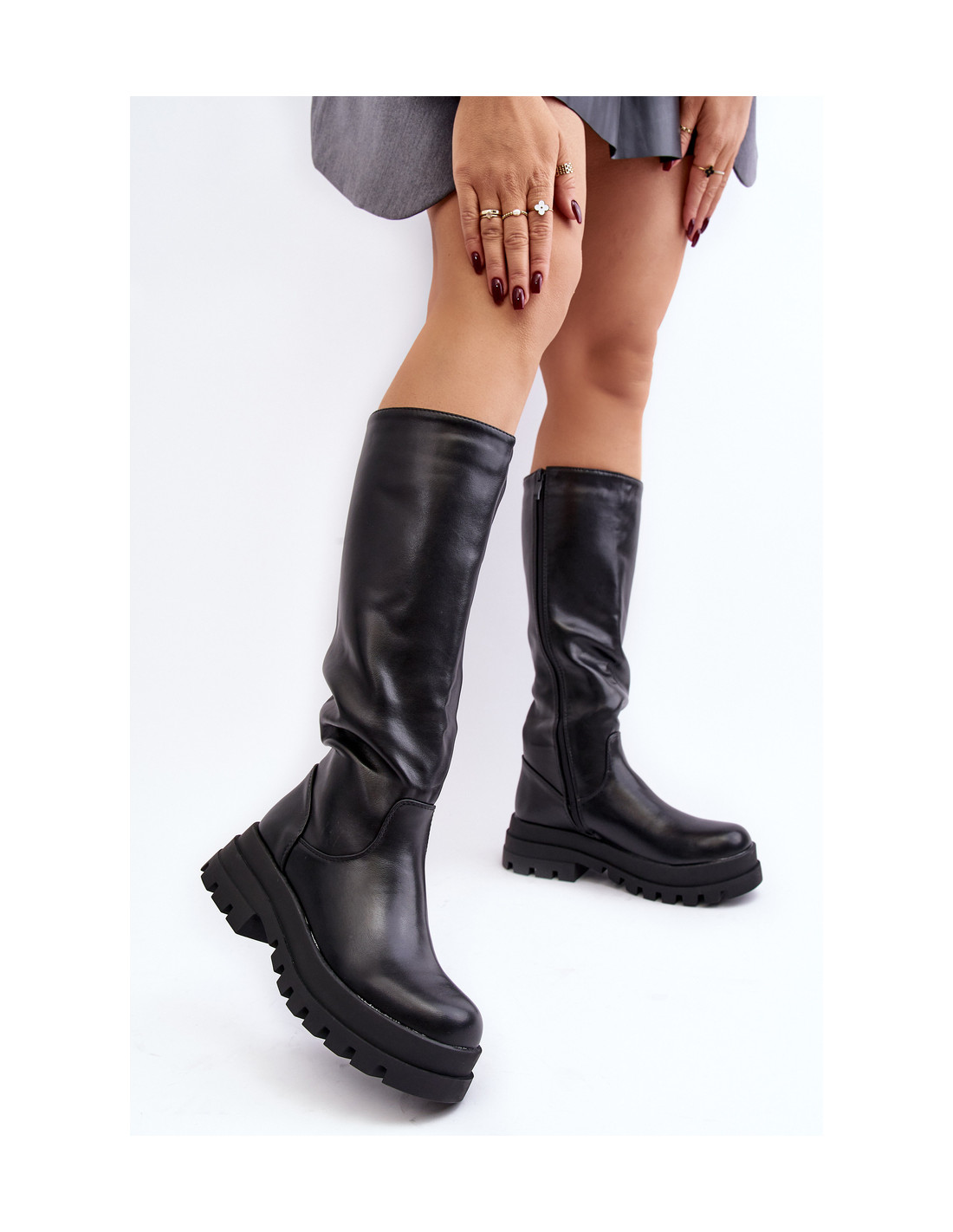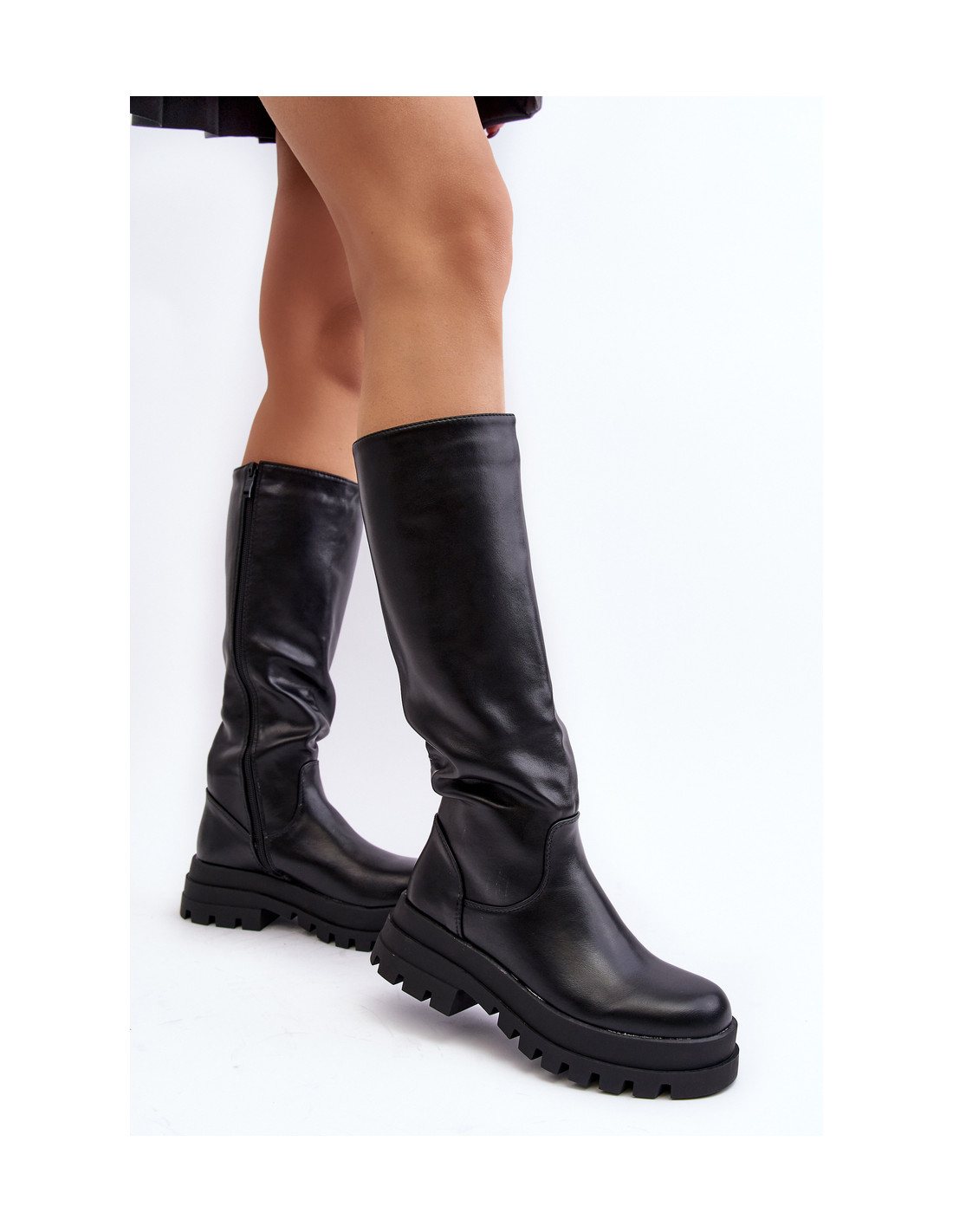 Klasikiniai moteriški batai iš eko odos. Viršutinė dalis yra virš kelio. Modelis su užtrauktuku per visą viršutinės dalies ilgį. Batai buvo pastatyti ant platformos ir plokščio kulno. Vidus apšiltintas batų antklode. Be to, šių batų kulnas yra standesnis. Jūs tikrai turėtumėte juos turėti! Renkantis dydį, vadovaukitės dydžių lentele.