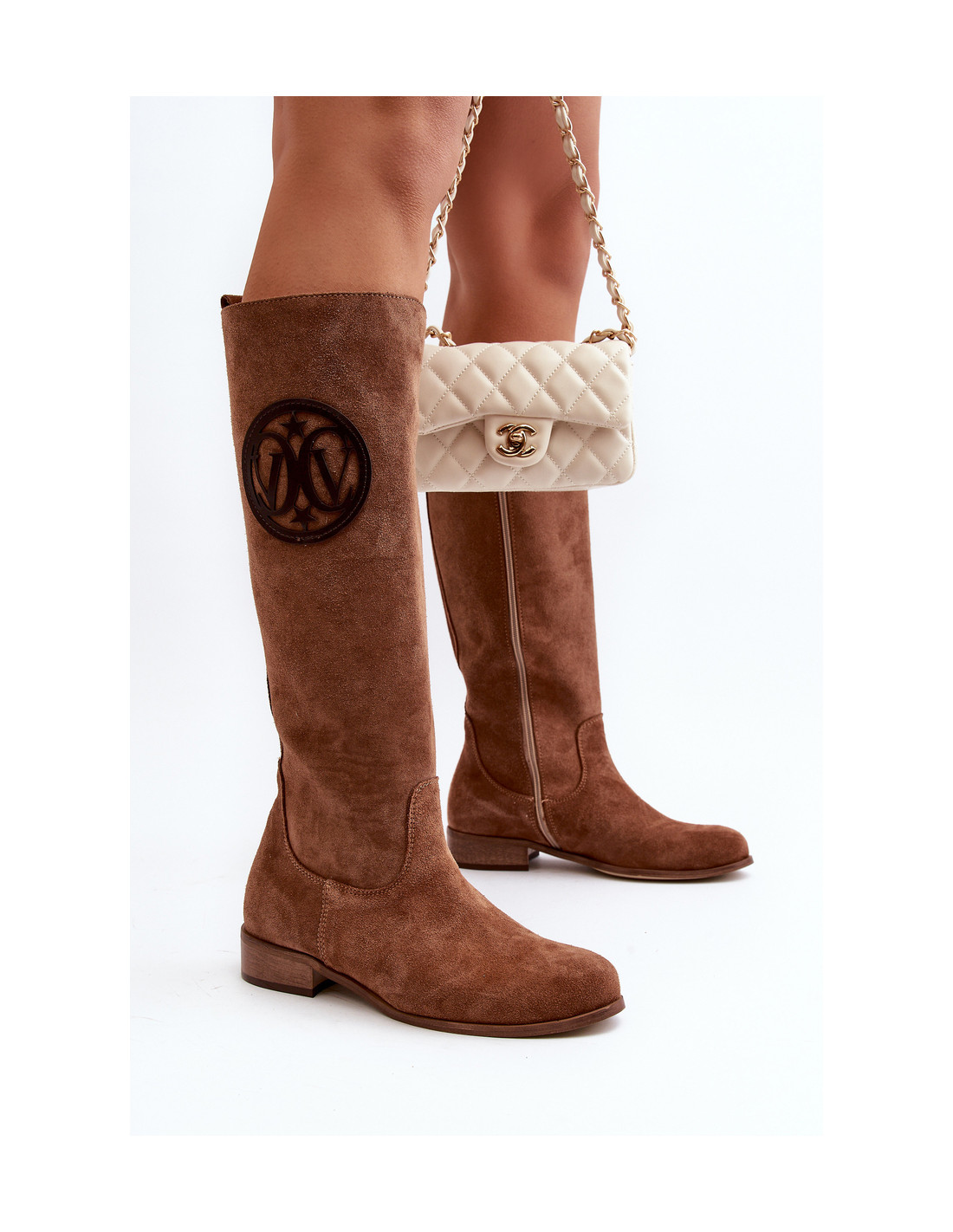 Zazoo 3367 moteriški zomšiniai batai virš kelių, rudi