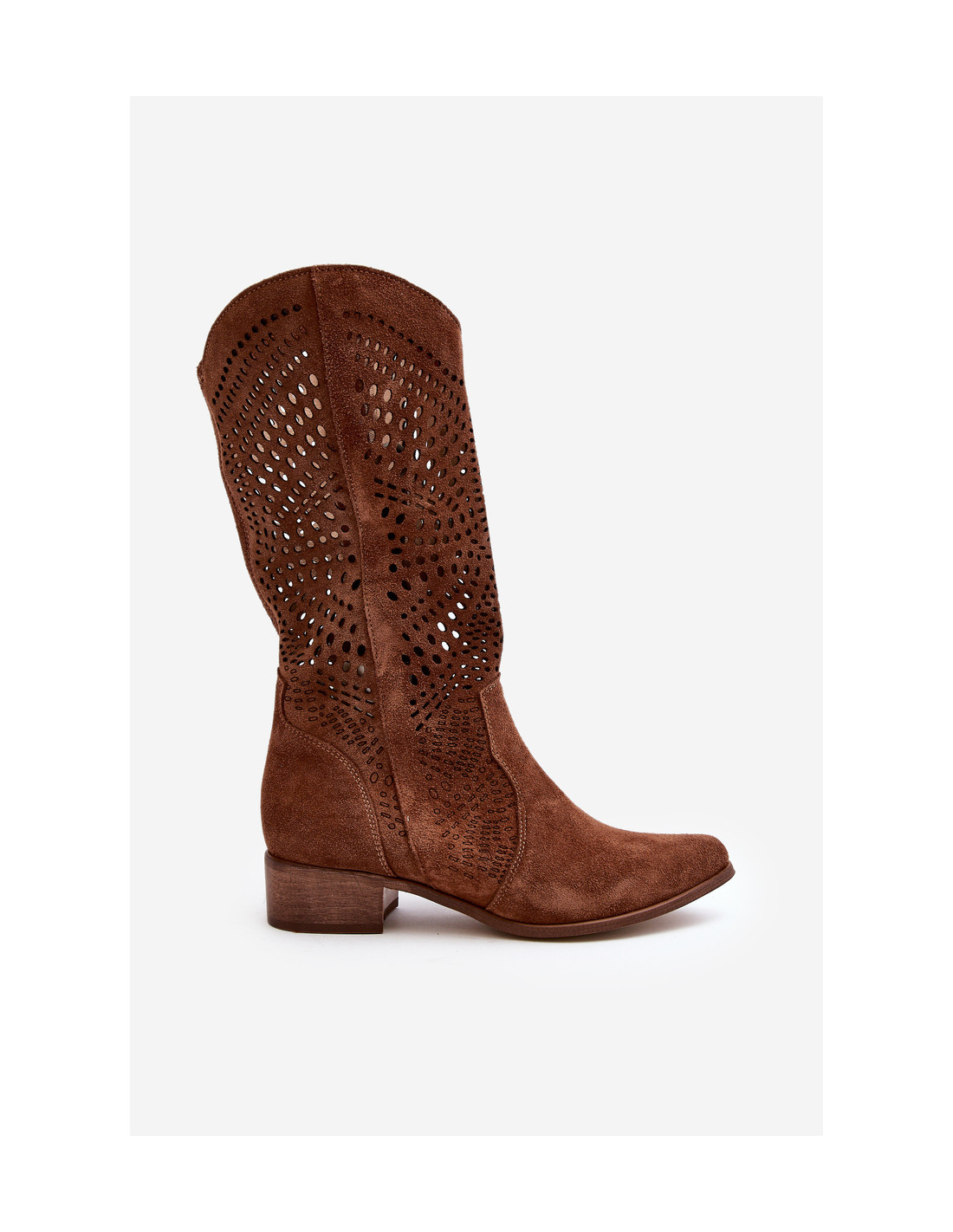 Zazoo 3305/ P Zomšiniai batai iki vidurio, ažūriniai rudi