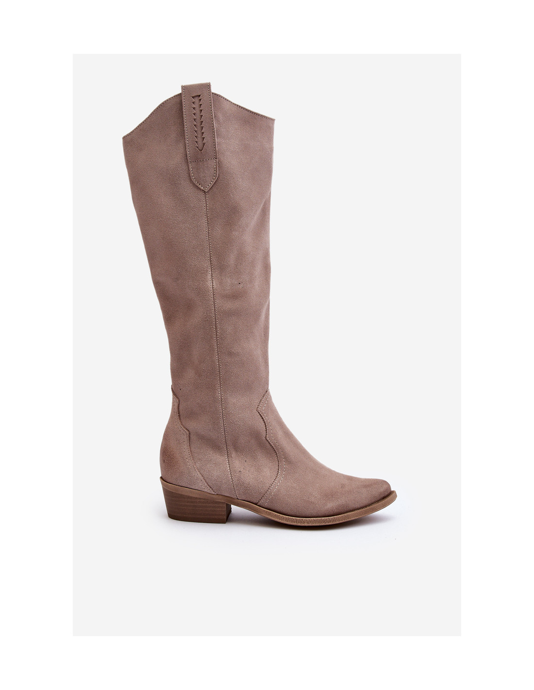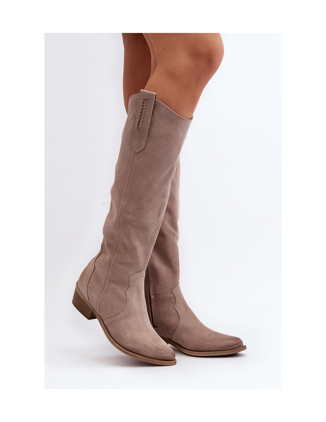Zazoo 3427 Moteriški zomšiniai kaubojiški batai Cappuccino