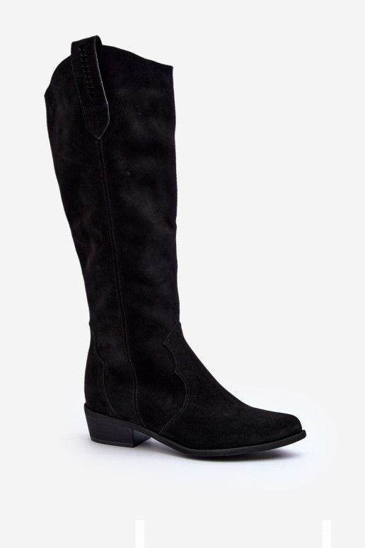 Zazoo 3427 Moterų zomšiniai kaubojiški batai juodi