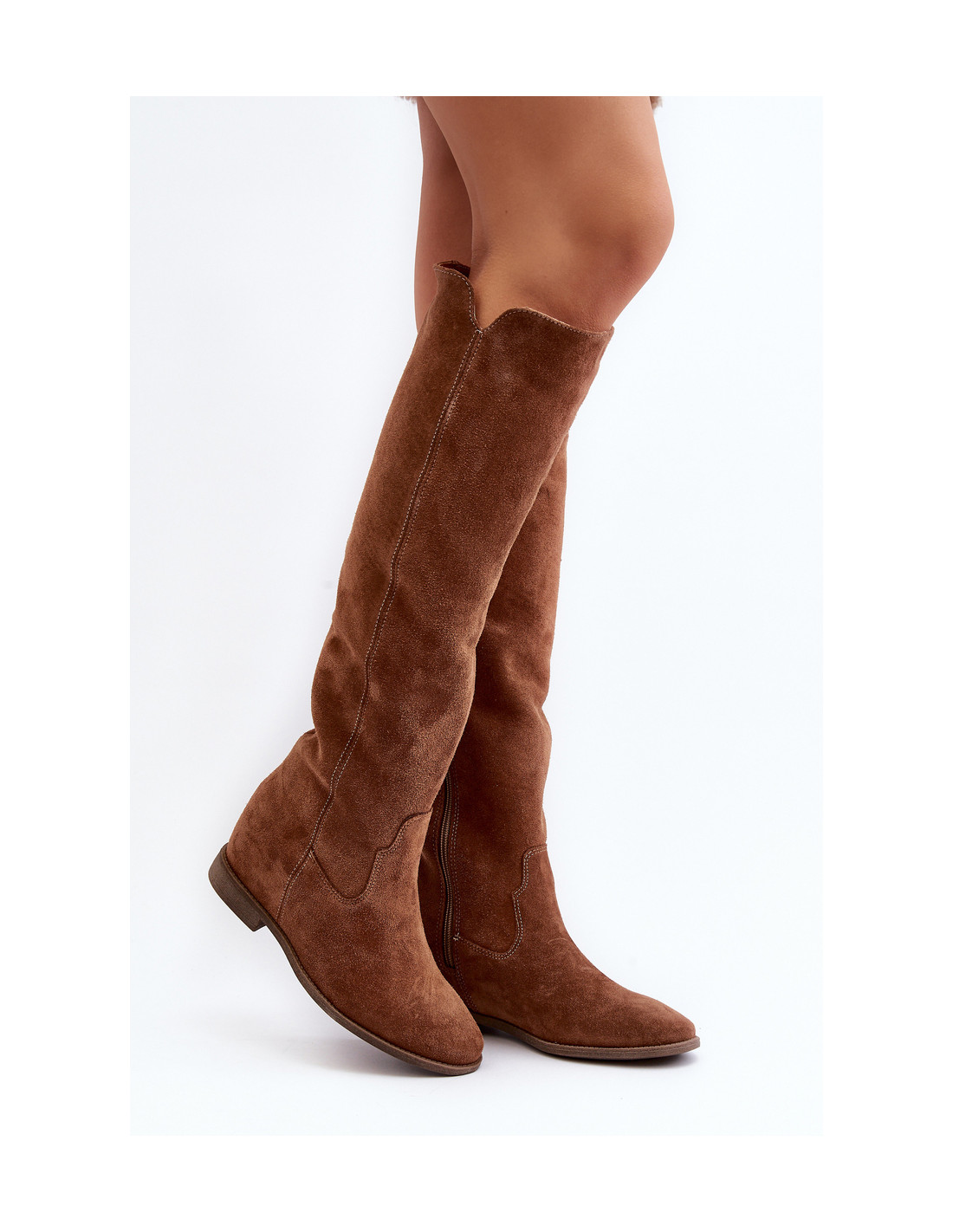 Zazoo 3407 zomšiniai batai iki kelių su kupranugariais plokščiakulniais