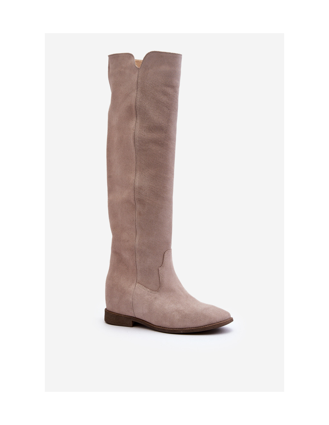 Zazoo 3407 zomšiniai batai iki kelių su plokščiais kapučino kulnais