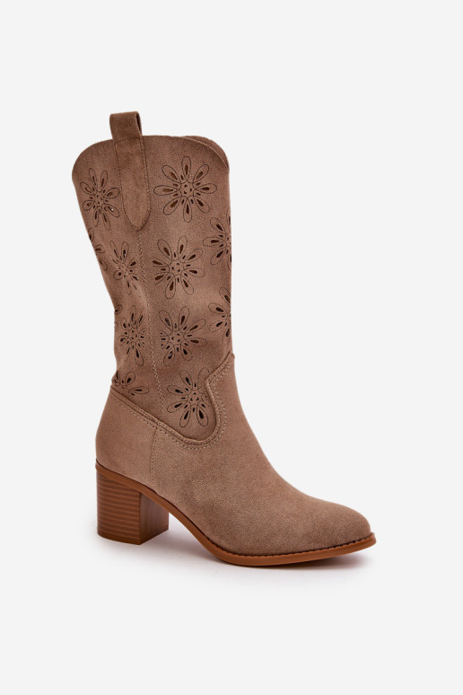 Moteriški ažūriniai batai iki vidurio, pagaminti iš Eco Suede Beige Nevilos