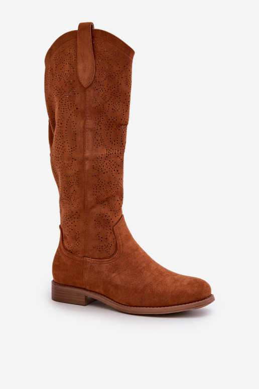 Moteriški ažūriniai batai puikiai papildys beveik bet kokį kasdienį stilių! Pagaminta iš ekologiškos zomšos. Statomas ant plokščio, stabilaus kulno. Suapvalinti kojų pirštai. Viršus virš kelių, užsegamas užtrauktuku. Be to, šis modelis turi standintą kulną. Jūs tikrai turėtumėte juos turėti! Renkantis dydį, vadovaukitės dydžių lentele.
