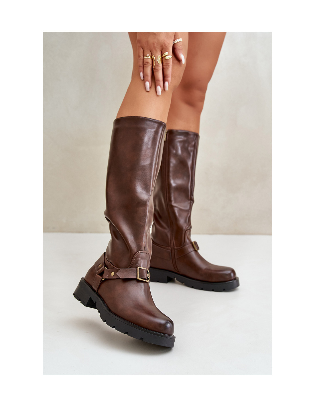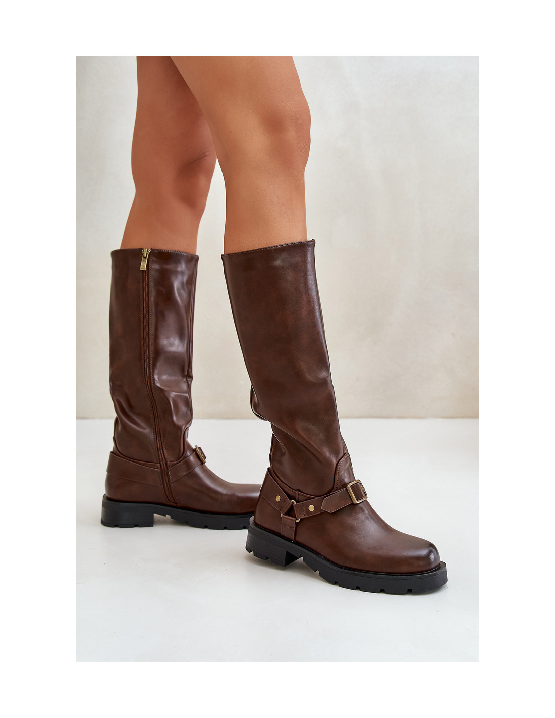 Moteriški batai pagaminti iš aukštos kokybės eko odos. Jie izoliuoti batų antklode. Nustatykite ant plokščio kulno. Modelis užsegamas užtrauktuku. Suapvalinti kojų pirštai. Virš kelių viršutinė dalis dekoruota petnešėlėmis su sagtimi. Šis klasikinis stilius turėtų būti jūsų garderobe! Renkantis dydį, vadovaukitės dydžių lentele.