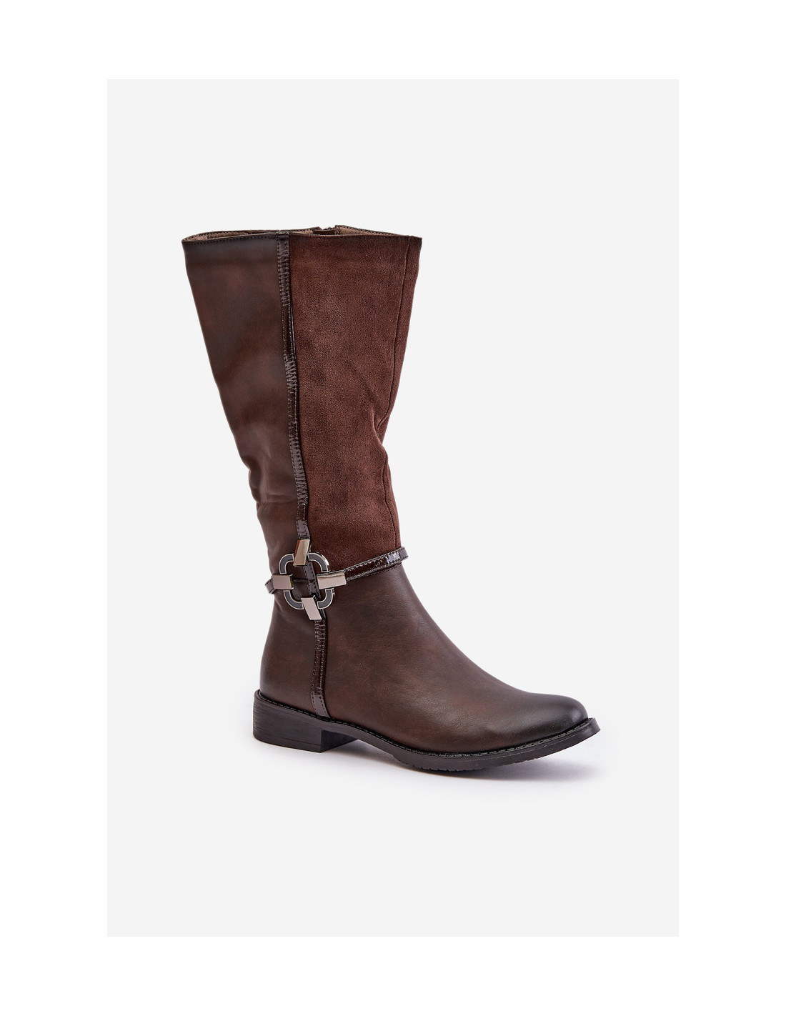 Moteriški Jezzi prekės ženklo batai. Viršutinė blauzdos vidurinė dalis. Nustatyti ant plokščio kulno, todėl juos patogu nešioti visą dieną. Jie turi izoliuotą vidų su batų antklode, kuri garantuoja šilumą ir komfortą. Migdolų nosys. Šis modelis išsiskiria dekoratyvine sagtimi su dirželiais. Dėl klasikinio kirpimo jie puikiai papildo bet kokį stilių. Renkantis dydį, vadovaukitės dydžių lentele.