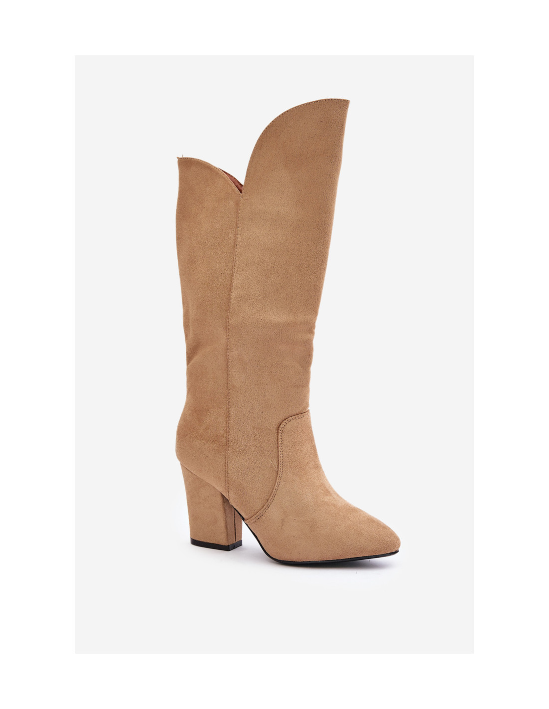 Aukštakulniai batai iki kelių, pagaminti iš ekologiškos zomšos, smėlio spalvos Clorira