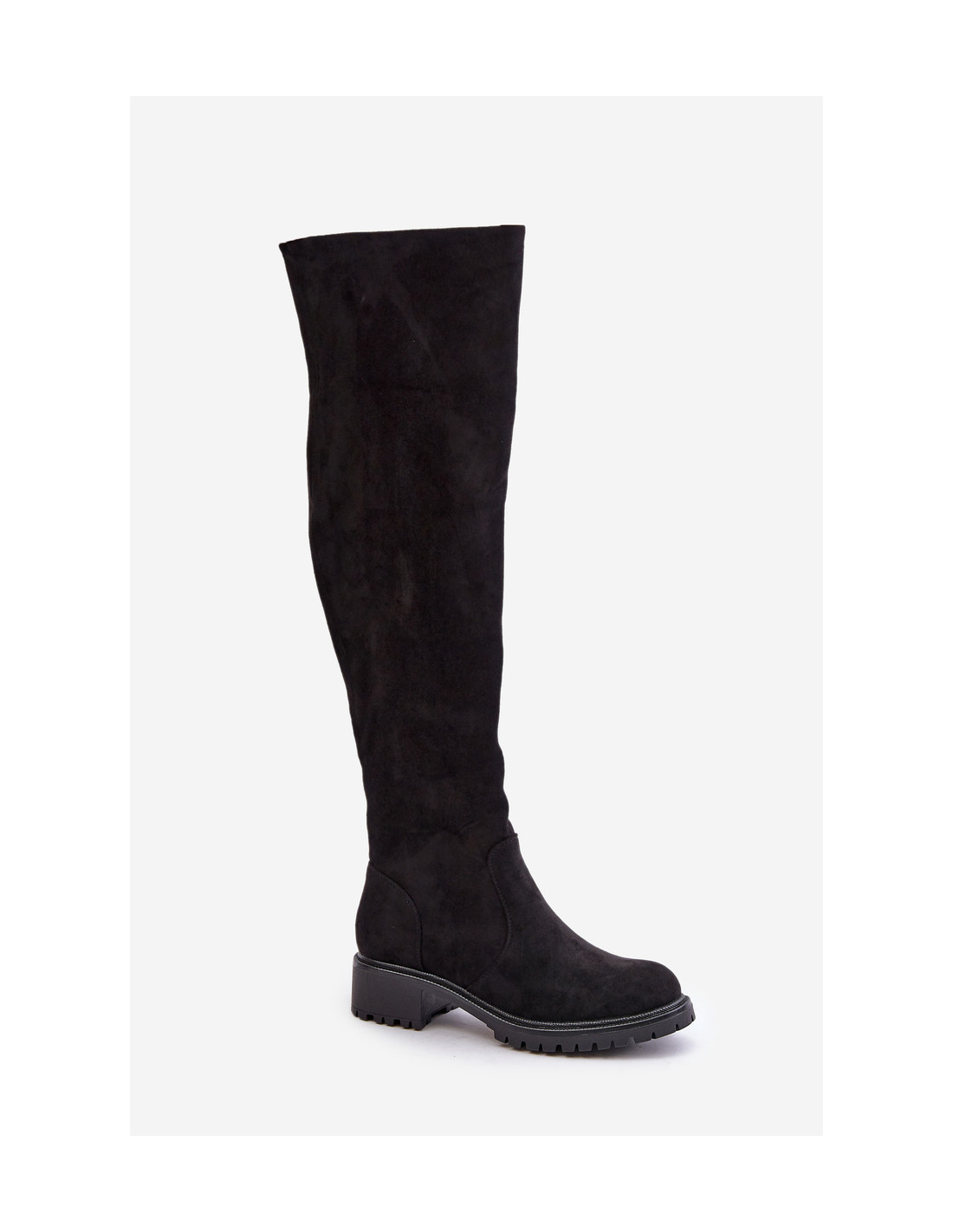 Moteriški batai, kurių batviršiai siekia virš kelių. Pagaminta iš ekologiškos zomšos. Nustatykite ant žemo kulno. Užsegamas modelis su papildomu užtrauktuku. Pirštai suapvalinti. Vidus iš dalies apšiltintas batų antklode. Jie puikiai tinka prie trumpų sijonų ar suknelių. Šie batai turėtų būti privalomi jūsų žiemos avalynės kolekcijoje! Renkantis dydį, vadovaukitės dydžių lentele.