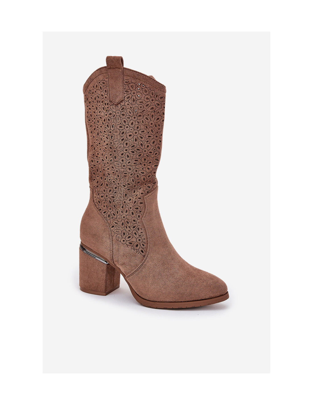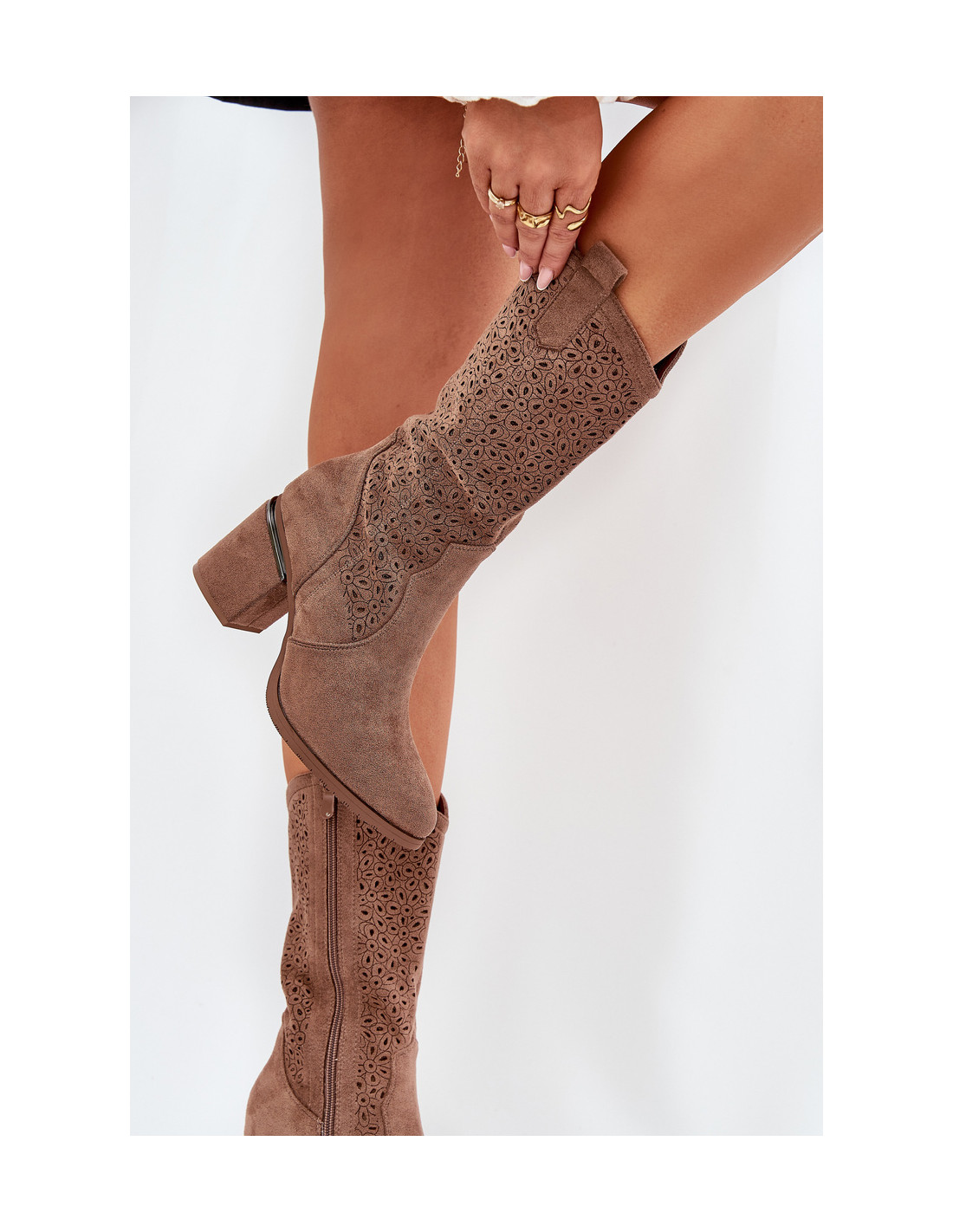 Ažūriniai kaubojiški batai iki vidurio blauzdos S.Barski HY51-238 Rudi