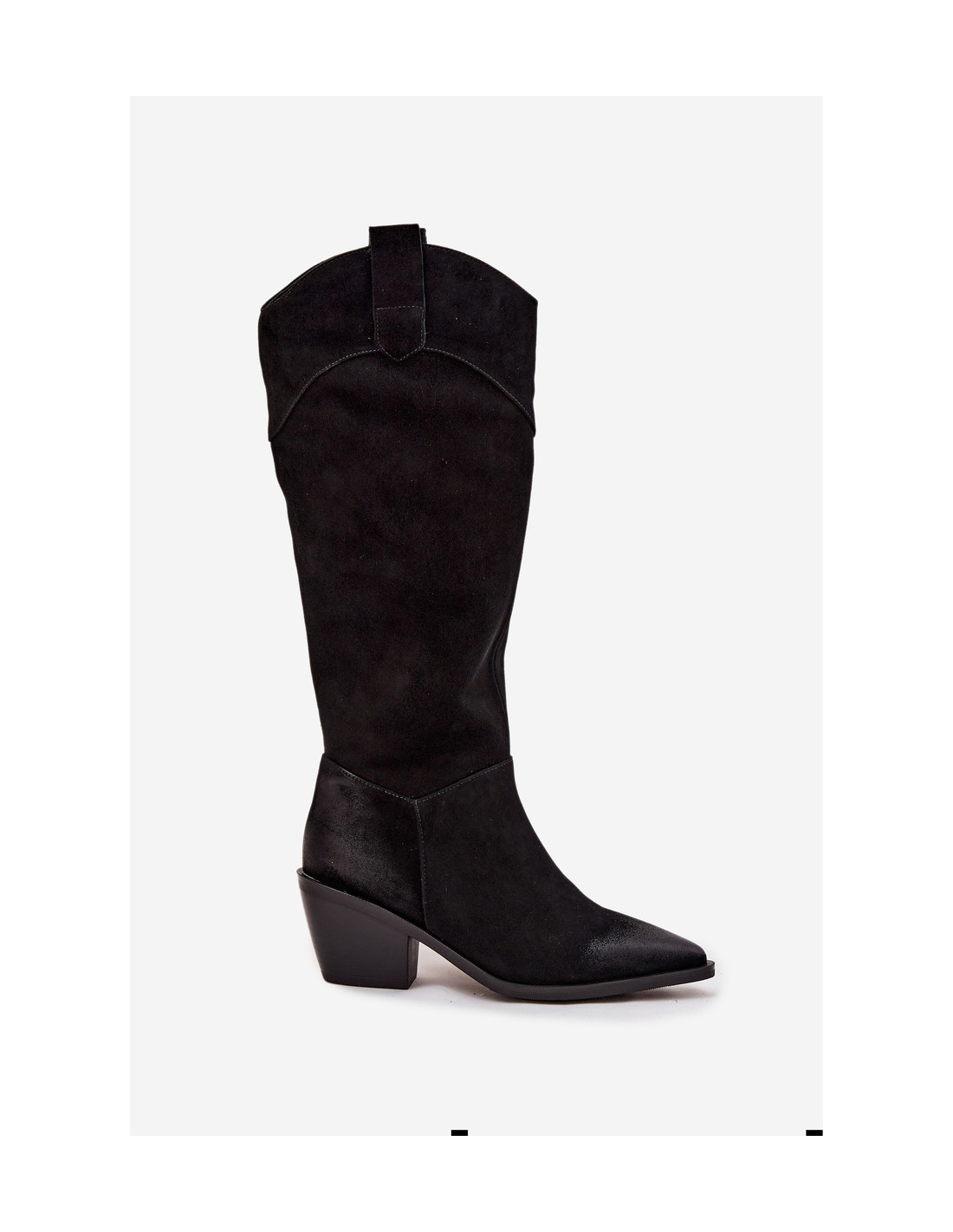 Moteriški kaubojiški aulinukai su aukštakulniais iš natūralios zomšos Artiker 57C0232 juodi