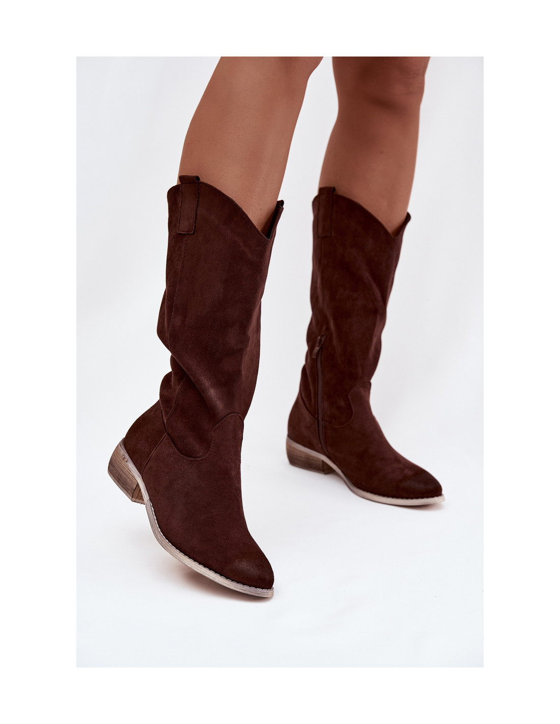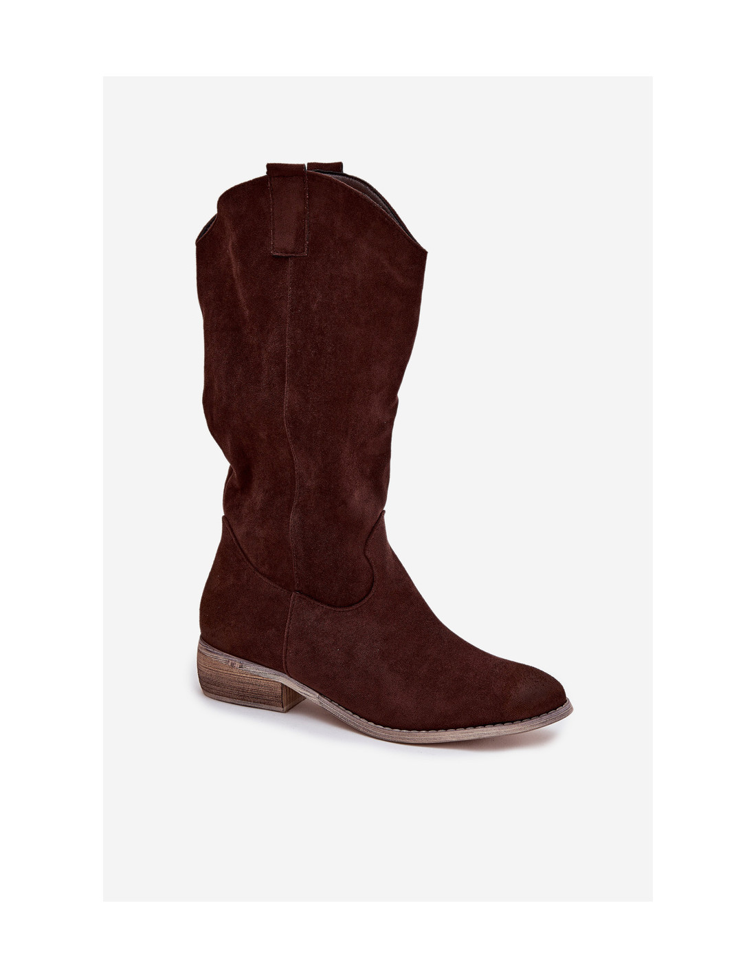 Žemakulniai kaubojaus batai iš ekologiškos zomšos šokolado ir vyšnių spalvos