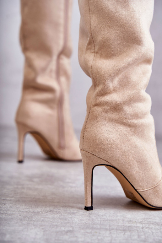 Zomšiniai aukštakulniai batai smėlio spalvos Carite