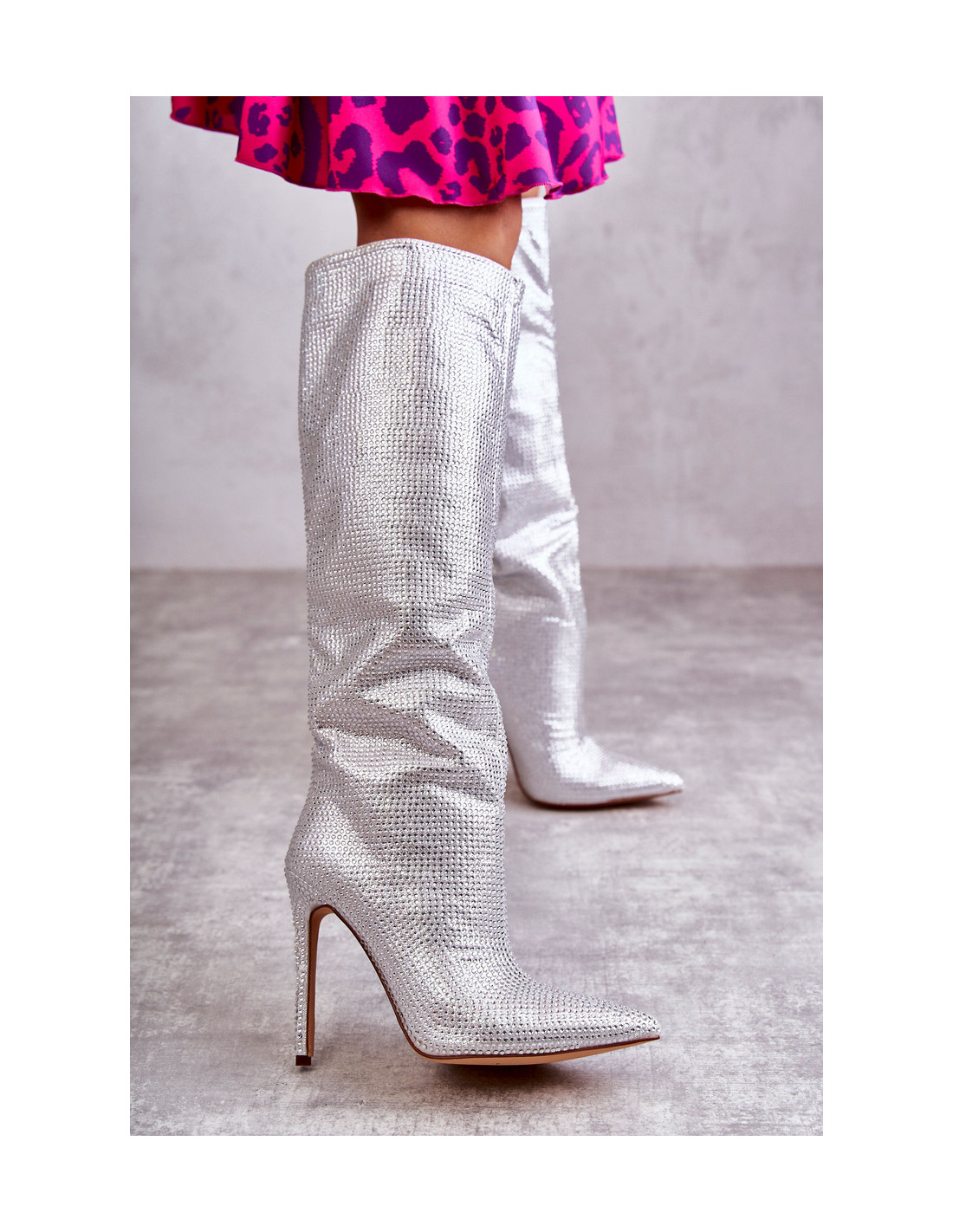 Madingi aukštakulniai batai su kubinio cirkonio sidabro spalva