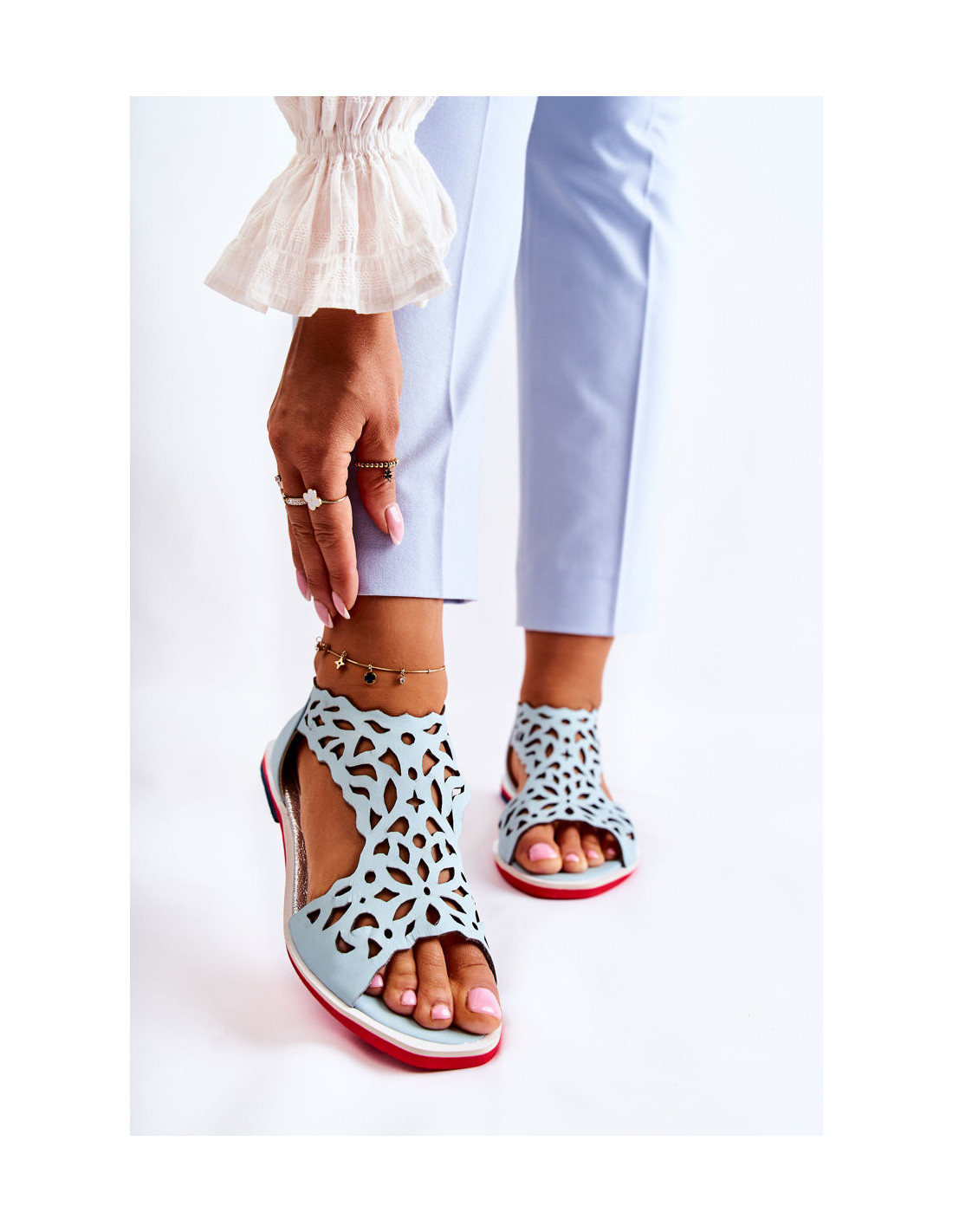 Odiniai ažūriniai sandalai Šviesiai mėlyni Alima