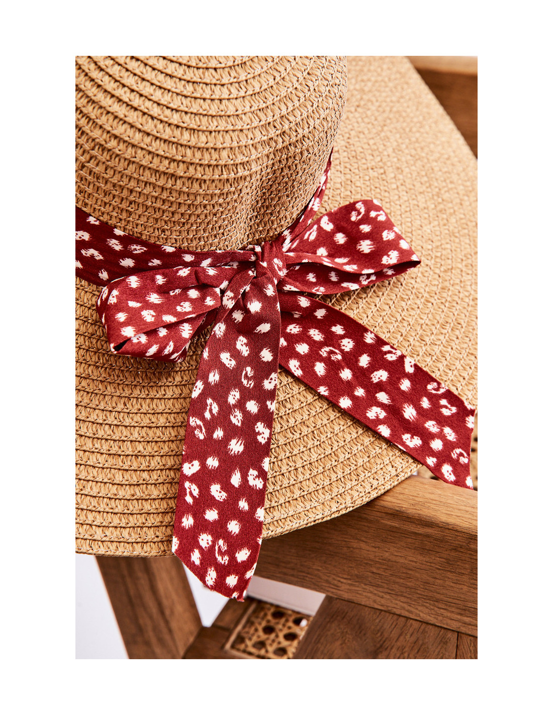 Lygi moteriška kepurė puikiai tiks saulėtoms dienoms! Jis buvo pagamintas iš 100% popieriaus. Šis modelis turi dekoratyvinį diržą, surištą lankeliu. Be to, viduje yra juostelė, leidžianti reguliuoti kepurės apimtį. Taip pat būtinai peržiūrėkite kitus skrybėlių modelius mūsų svetainėje!