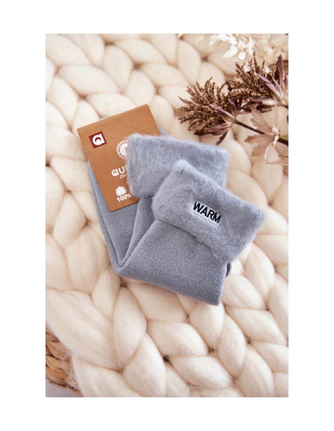 Dviejų dydžių grupių medvilninės kojinės puikiai tiks tiems, kurie vertina šilumą ir komfortą šaltesnėmis dienomis. Jie turi izoliaciją švelnaus kailio pavidalu. Ant kojinių šono yra dekoratyvinis užrašas.