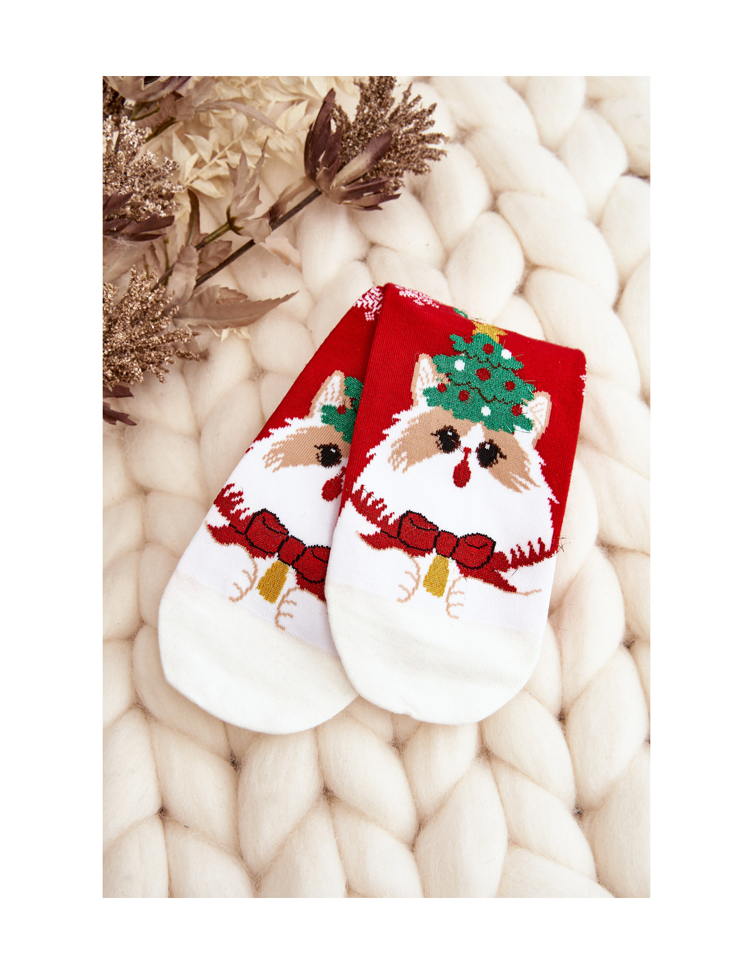 Moteriškos kalėdinės kojinės su raudonu kačiuku