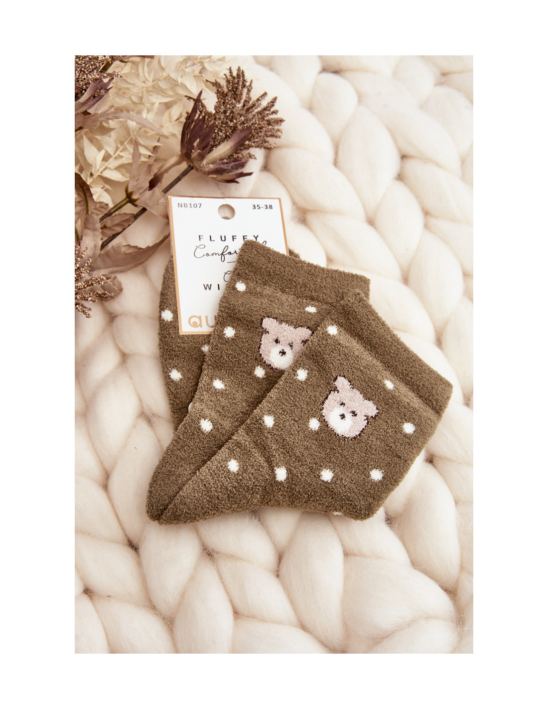 Moteriškos šiltos kojinės su taškeliais ir meškiukais, žalios spalvos