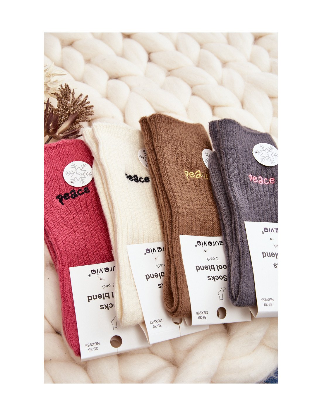 Šiltos moteriškos kojinės, puikiai tiks šaltoms dienoms. Modelis su subtiliu užrašu. Dėl lengvo manžeto jie puikiai priglus prie kojos pločio. Jūs tikrai turėtumėte juos turėti!