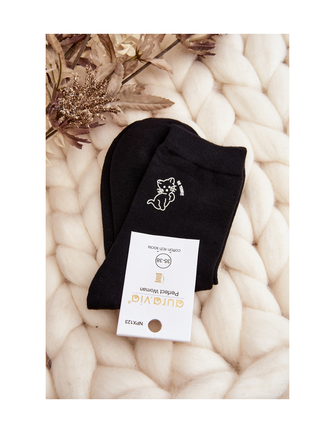 Moteriškos glotnios kojinės su kačiuku, juodos