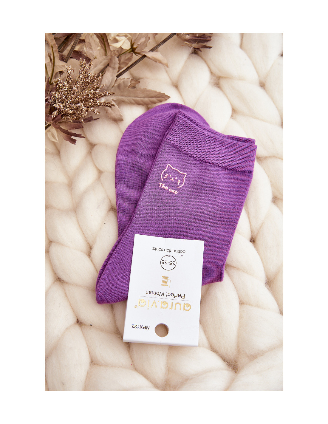 Moteriškos glotnios kojinės su kačiuko purpurine spalva