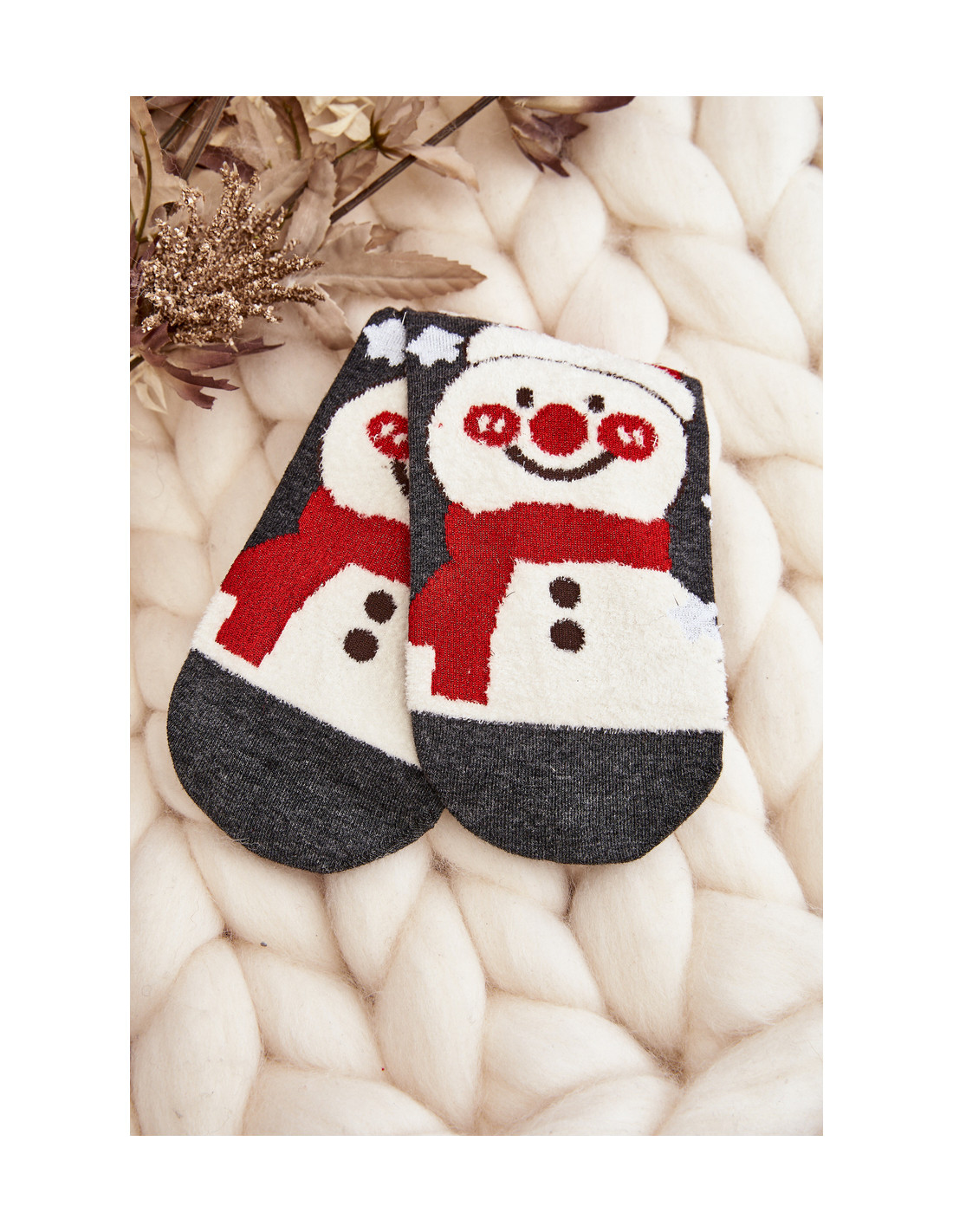 Moteriškos kalėdinės kojinės su sniego seneliu, pilkos spalvos