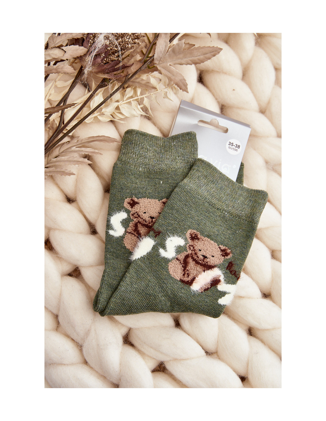 Šiltos medvilninės kojinės su meškiuku, žalia