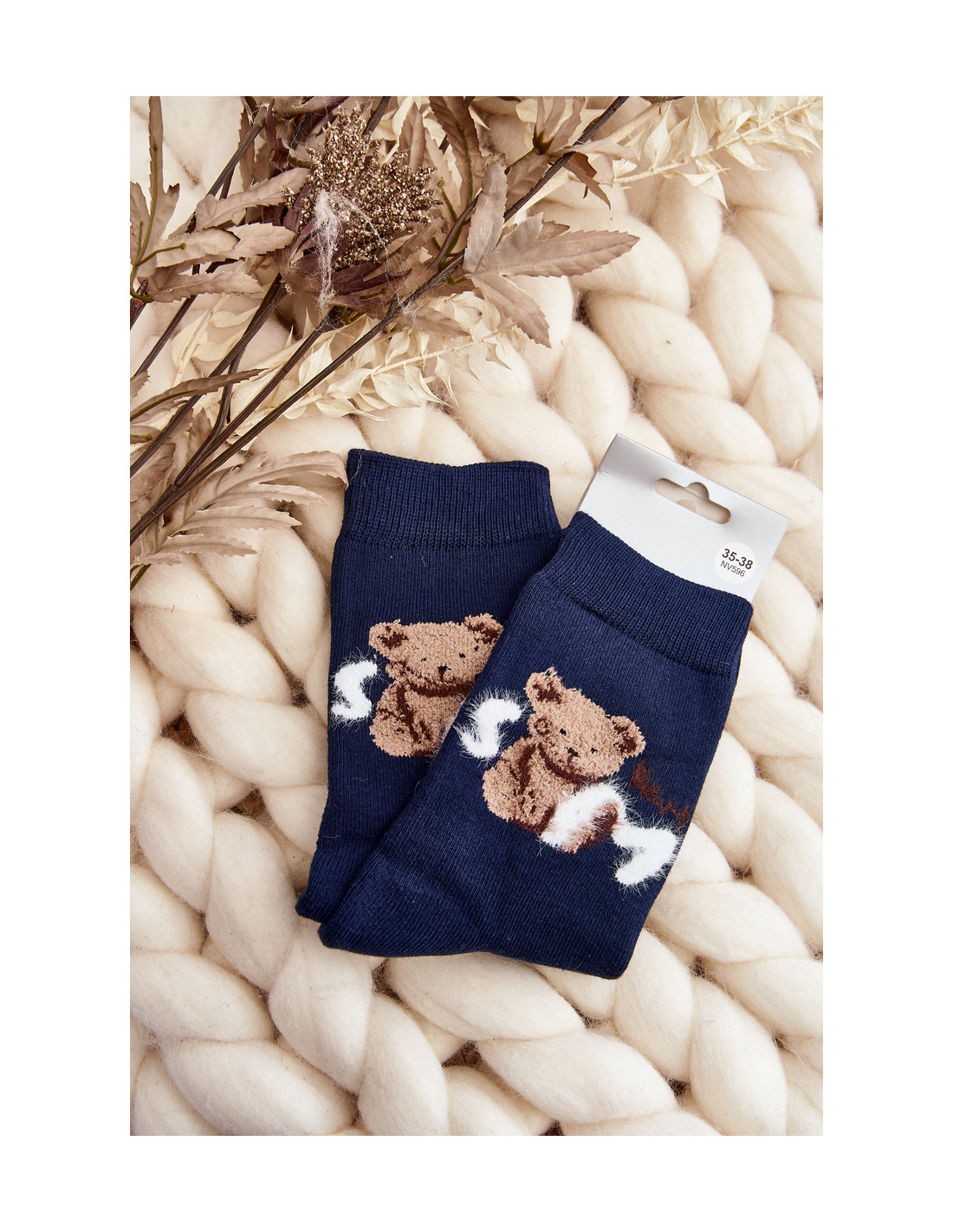 Šiltos moteriškos kojinės, puikiai tiks šaltoms dienoms. Modelis su meškiuko lopinėliu. Dėl lengvo manžeto jie puikiai priglus prie kojos pločio. Jūs tikrai turėtumėte juos turėti!