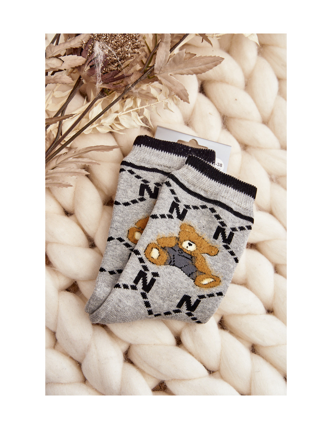 Šiltos medvilninės kojinės su meškiuku, pilkos spalvos