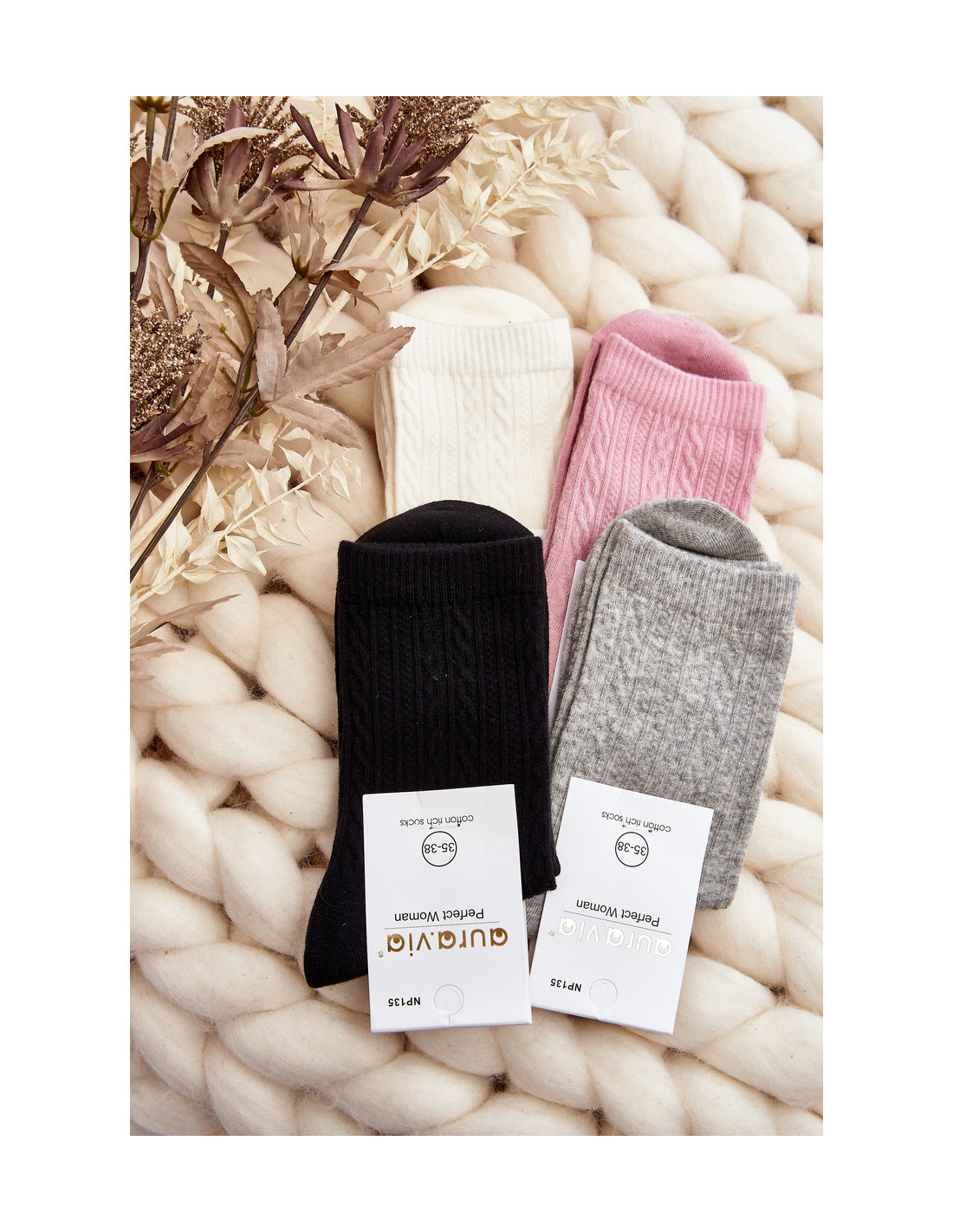 Moteriškos medvilninės kojinės su rausvos spalvos įspaudu