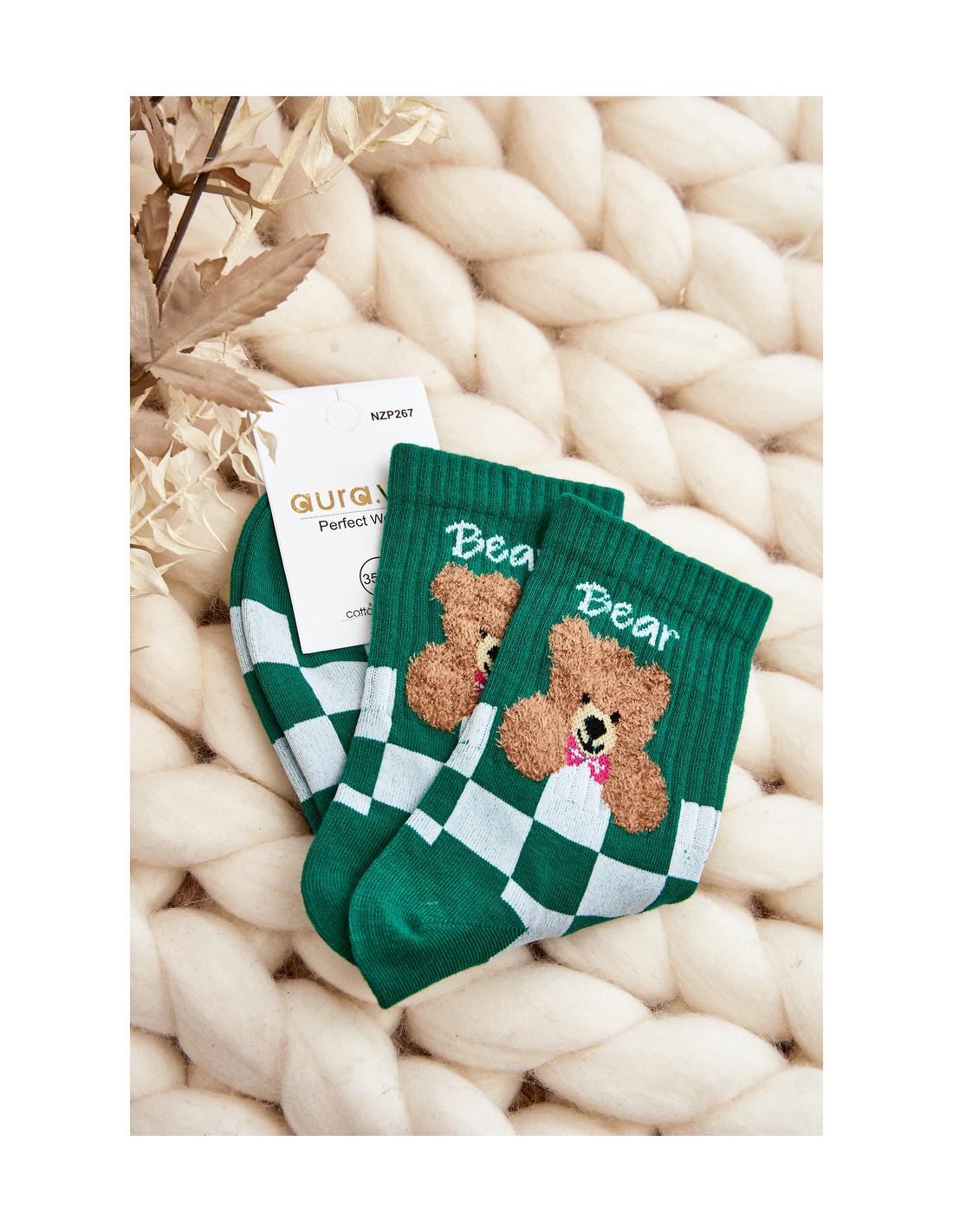 Raštuotos moteriškos kojinės su meškiuku, žalia