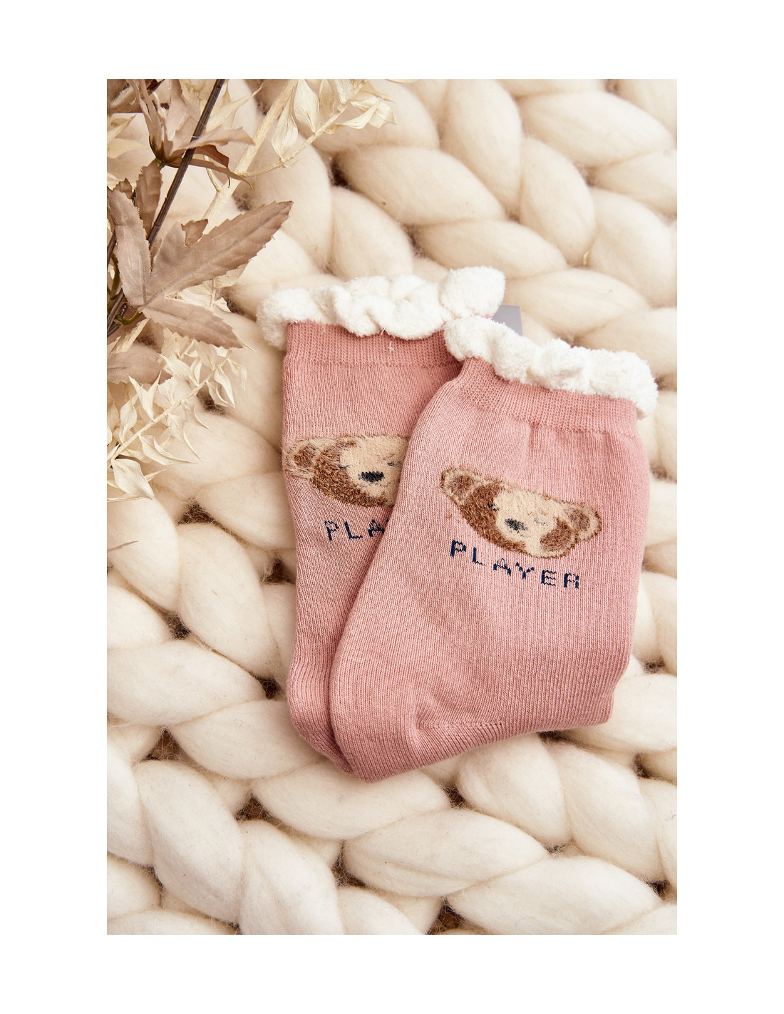 Storos medvilninės kojinės su rožiniu meškiuku