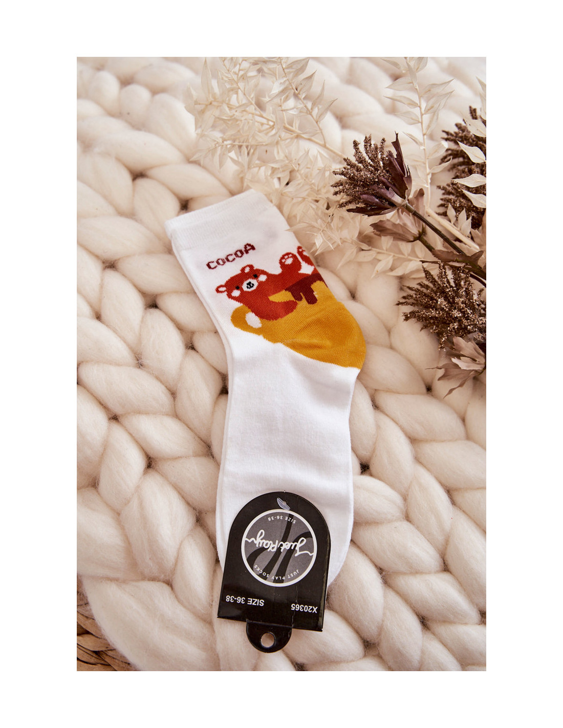 Juokingos moteriškos kojinės Meškiukas puodelyje baltas