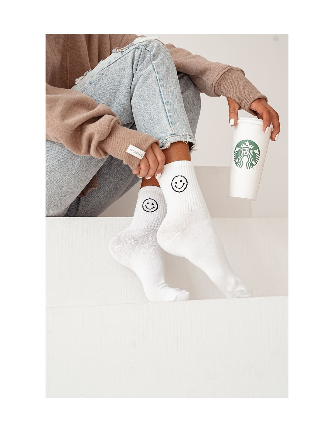 Moteriškos medvilninės jaustukų kojinės, baltos