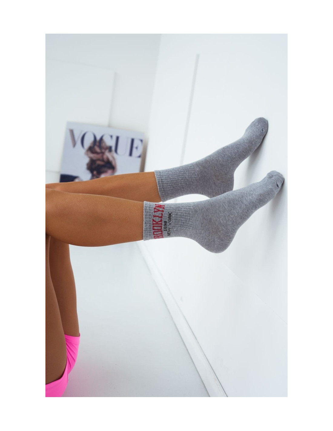 Moteriškos kojinės su užrašu Brooklyn Grey