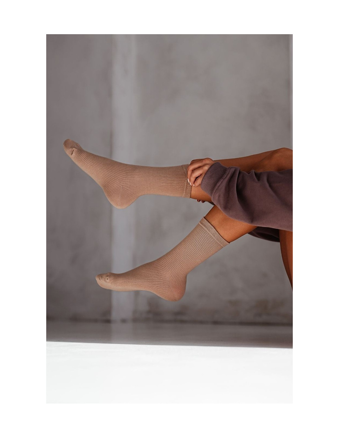 Smėlio spalvos briaunotos moteriškos kojinės