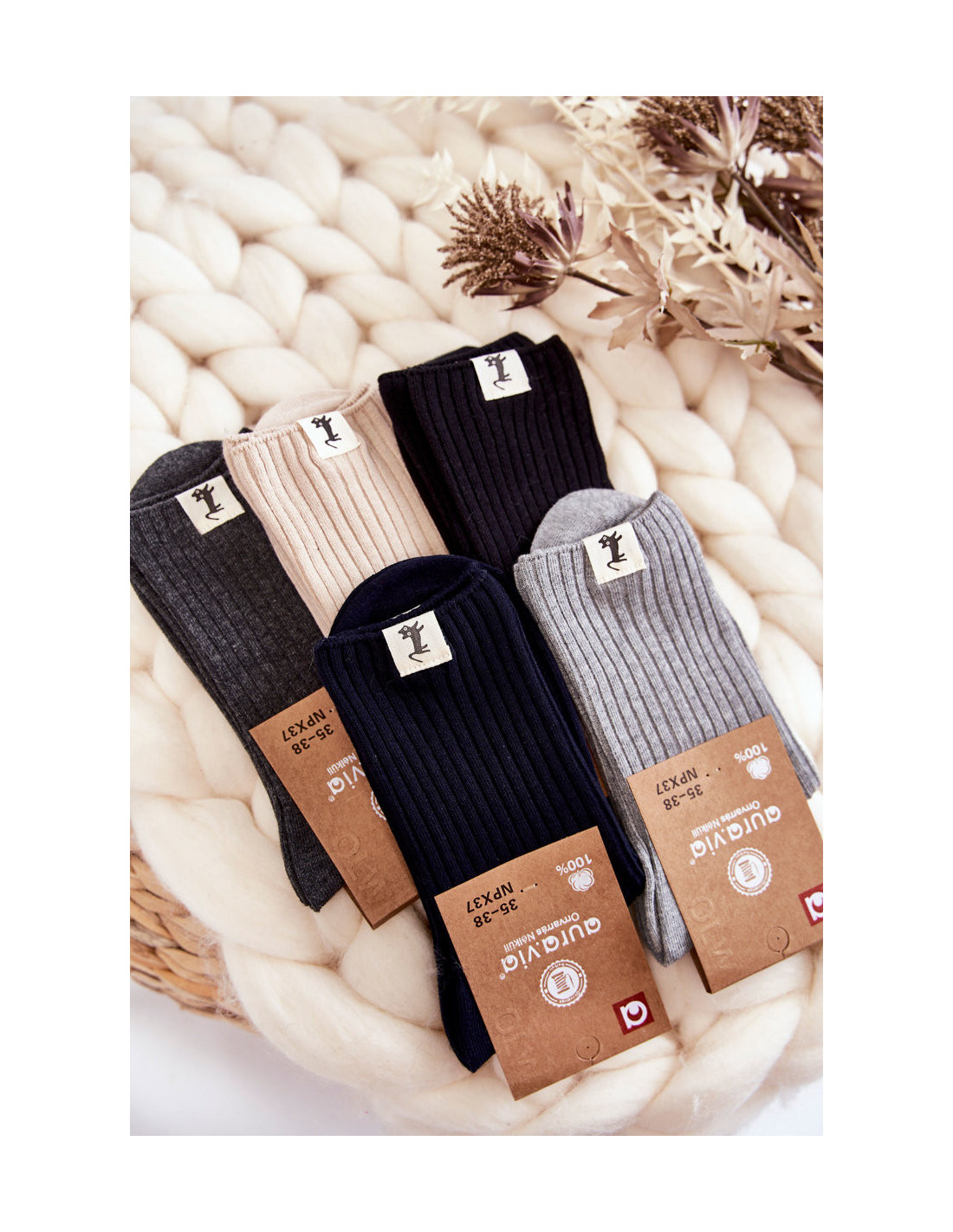 Moteriškos medvilninės kojinės pagamintos iš aukštos kokybės medžiagos su briaunuotu raštu. Universalus, patogus ir tuo pačiu patvarus. Pagaminta iš dviejų dydžių grupių. Mažas elastano kiekis užtikrina tinkamą prigludimą prie kojos. Modelis kulkšnies. Šios kojinės yra papildomai be slėgio.