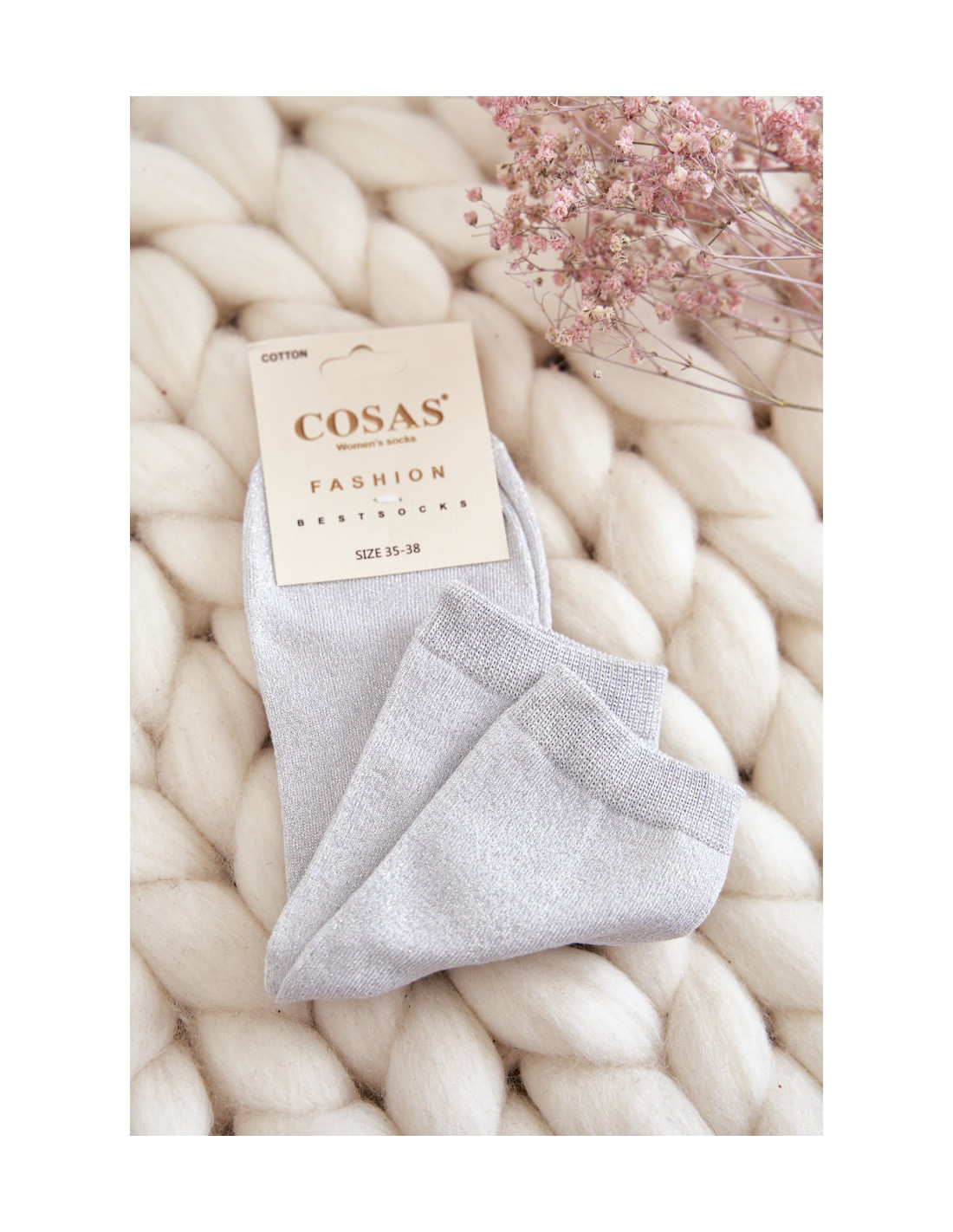 Moteriškos medvilninės kojinės su blizgiu siūlu Cosas White
